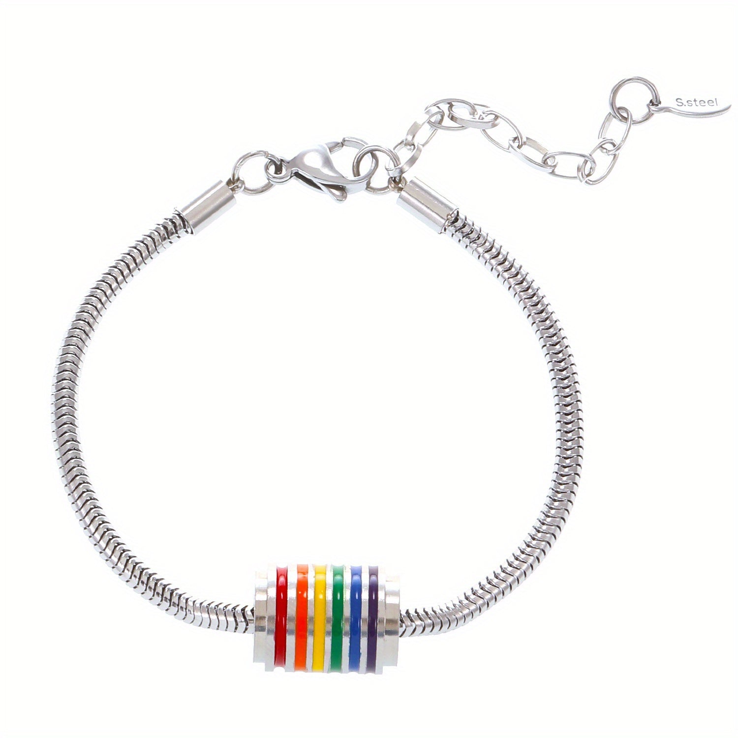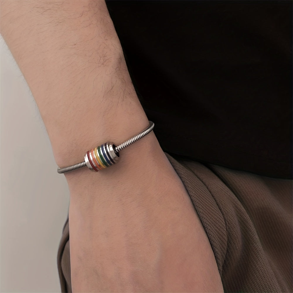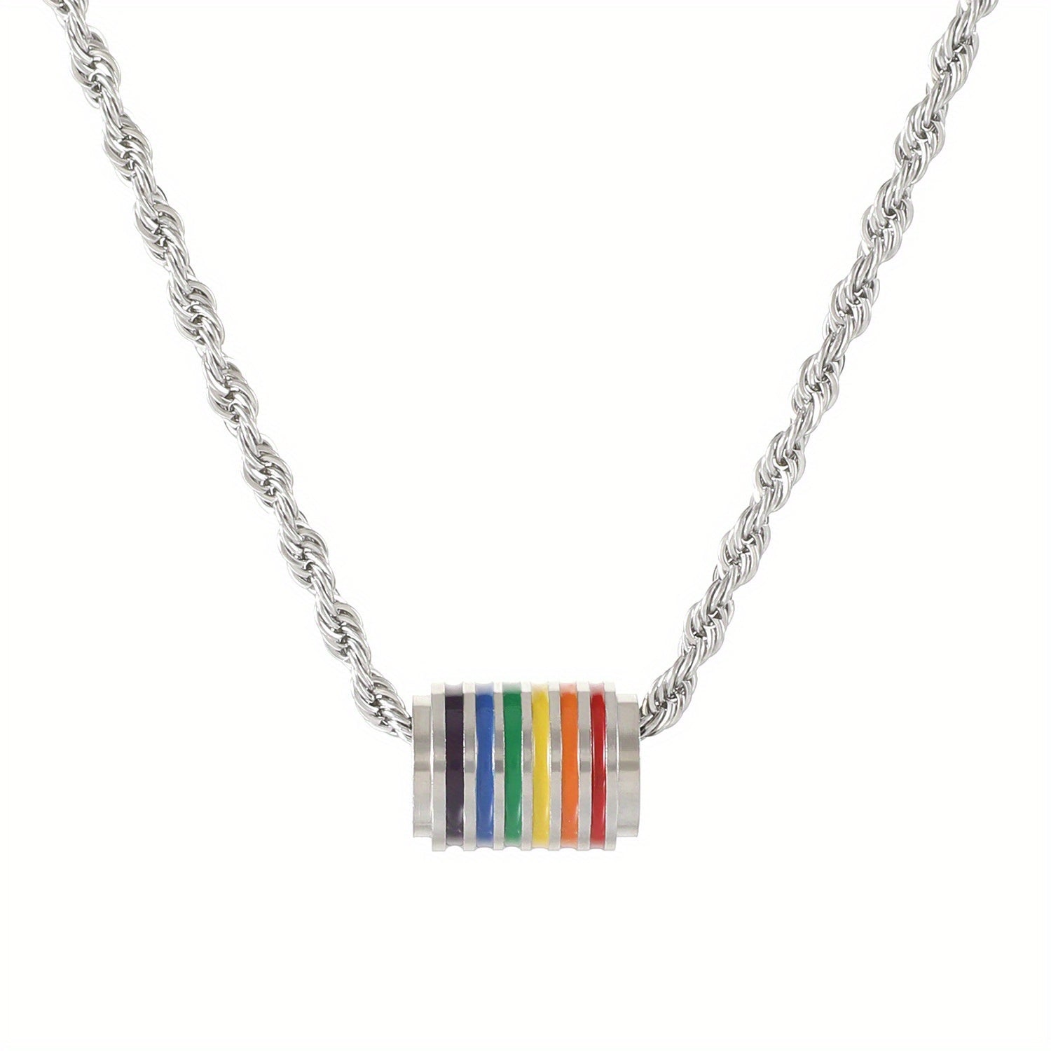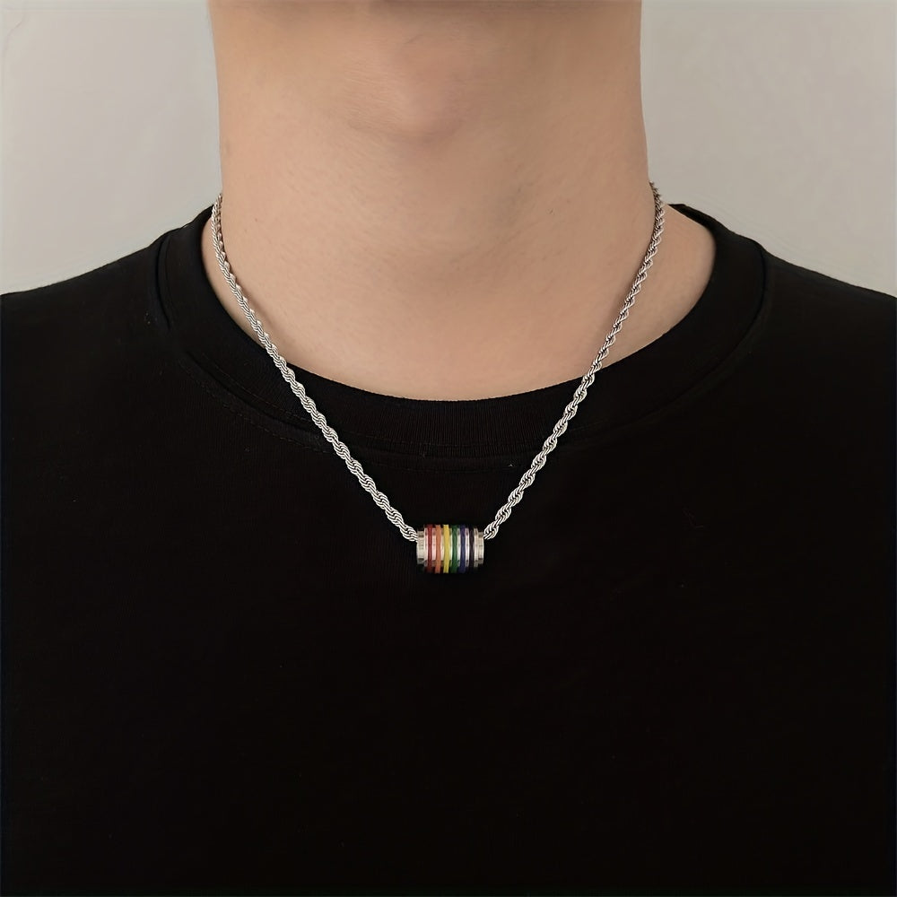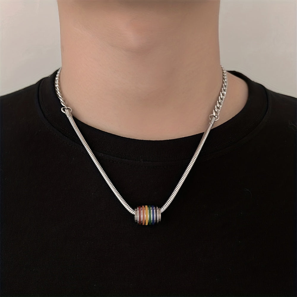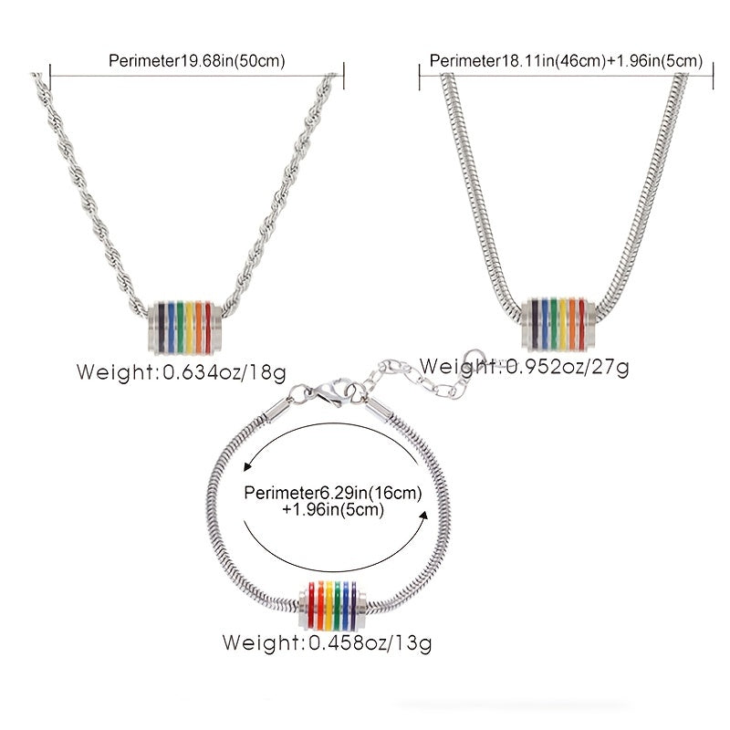 This stainless steel necklace and bracelet set features a trendy rainbow stitching design, perfect for a hip hop and stylish look.
