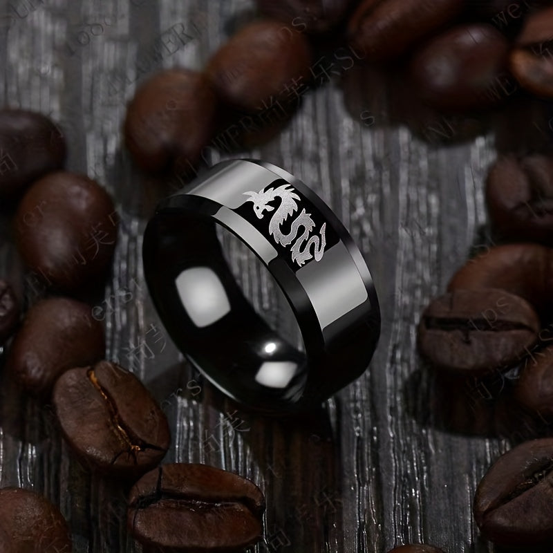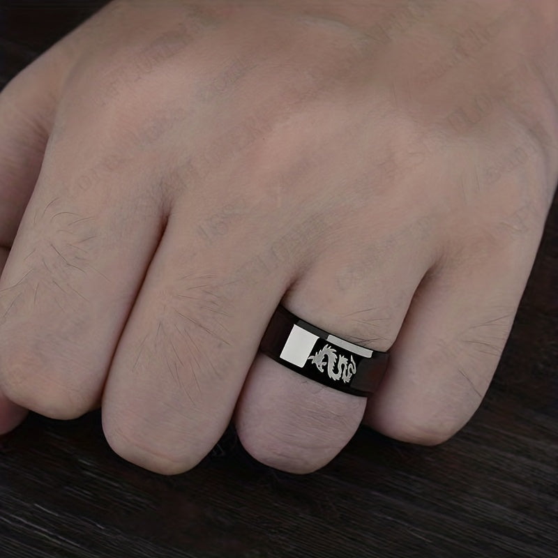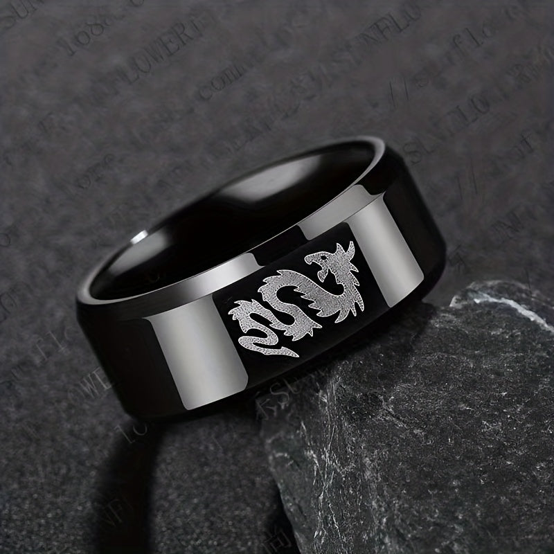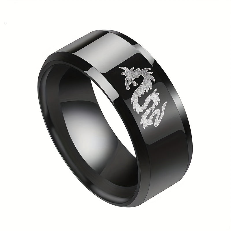 This domineering ring features a dragon pattern, crafted from titanium steel for durability.