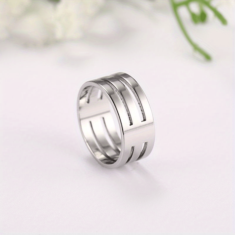 This classic stainless steel ring is a perfect accessory for men. It adds a stylish touch to any outfit.