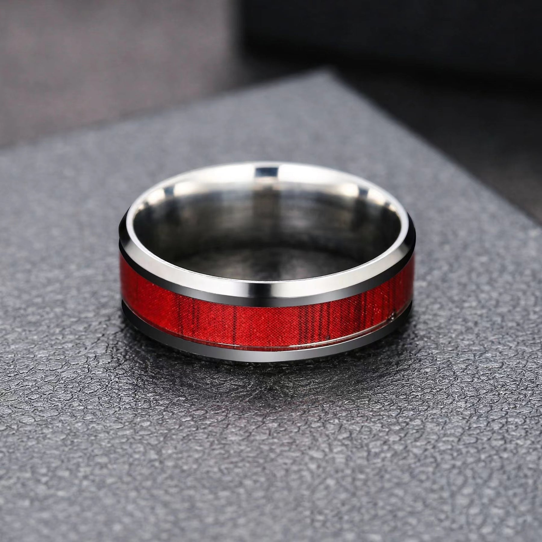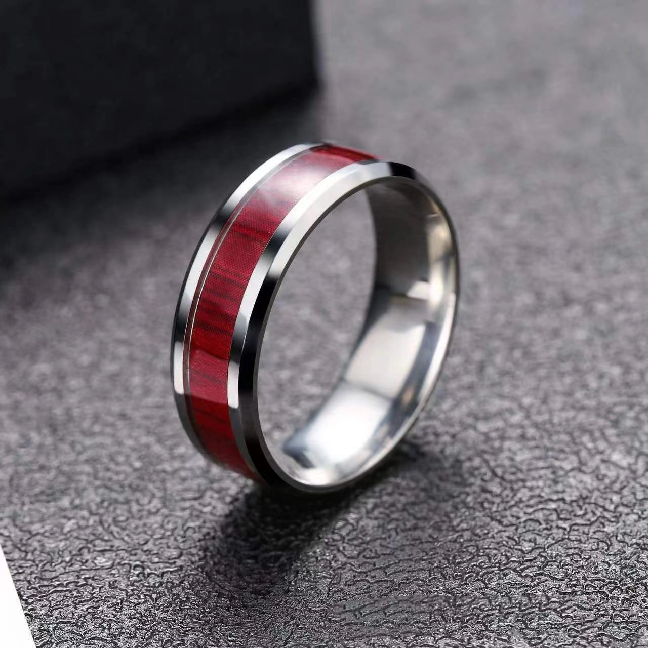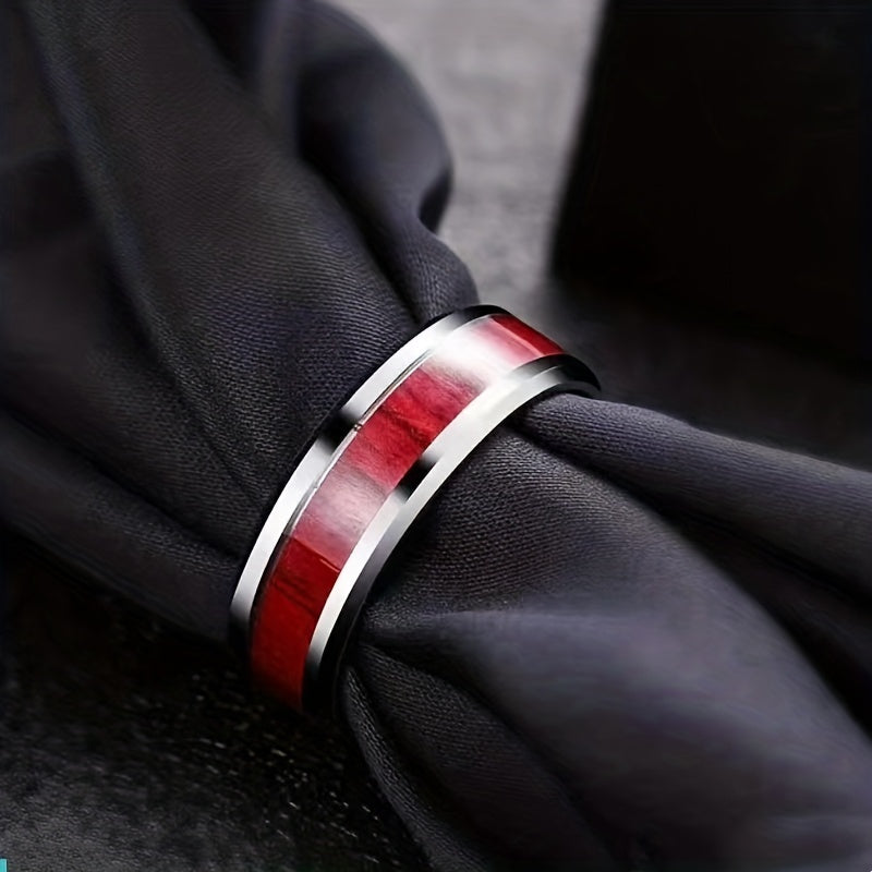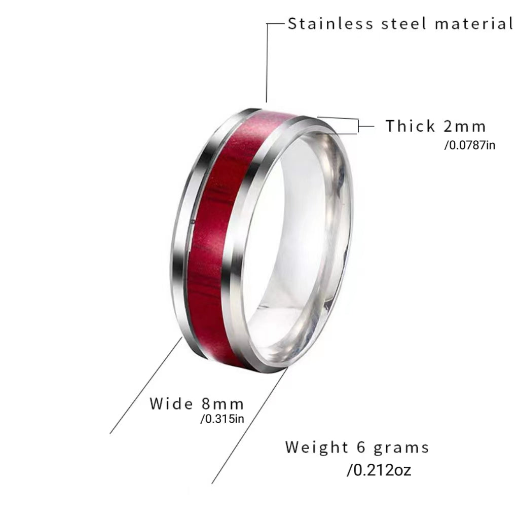 This men's ring is made of stainless steel with a wood grain design that never fades, giving it a stylish and durable look.