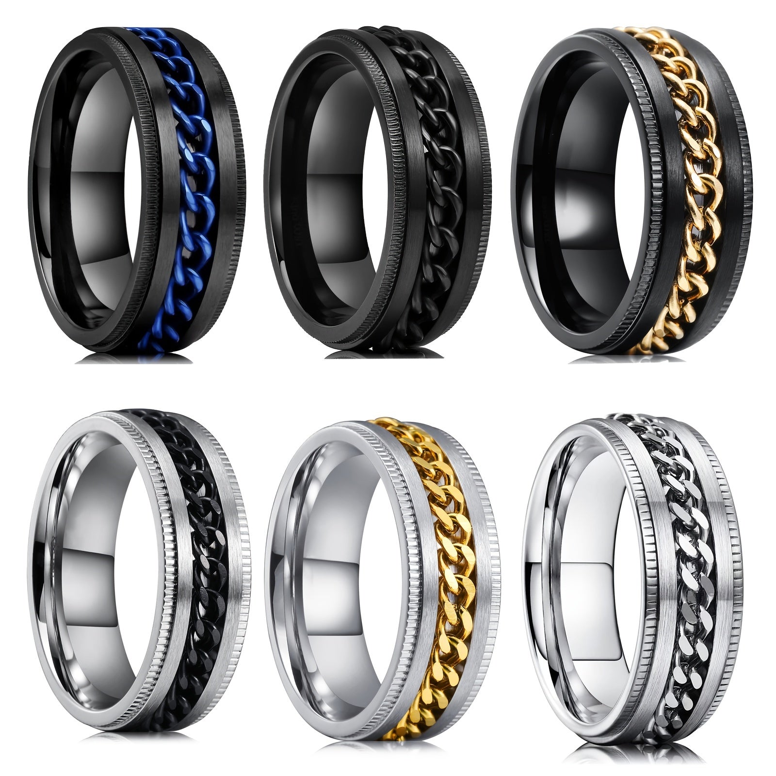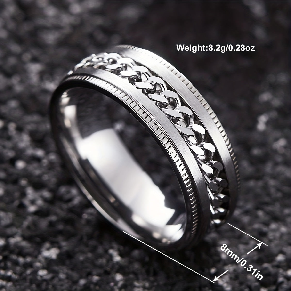 This stainless steel ring with chain is a stylish accessory for men who want a unique look. The chain adds an edgy touch to the classic ring design.