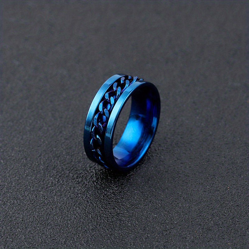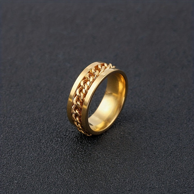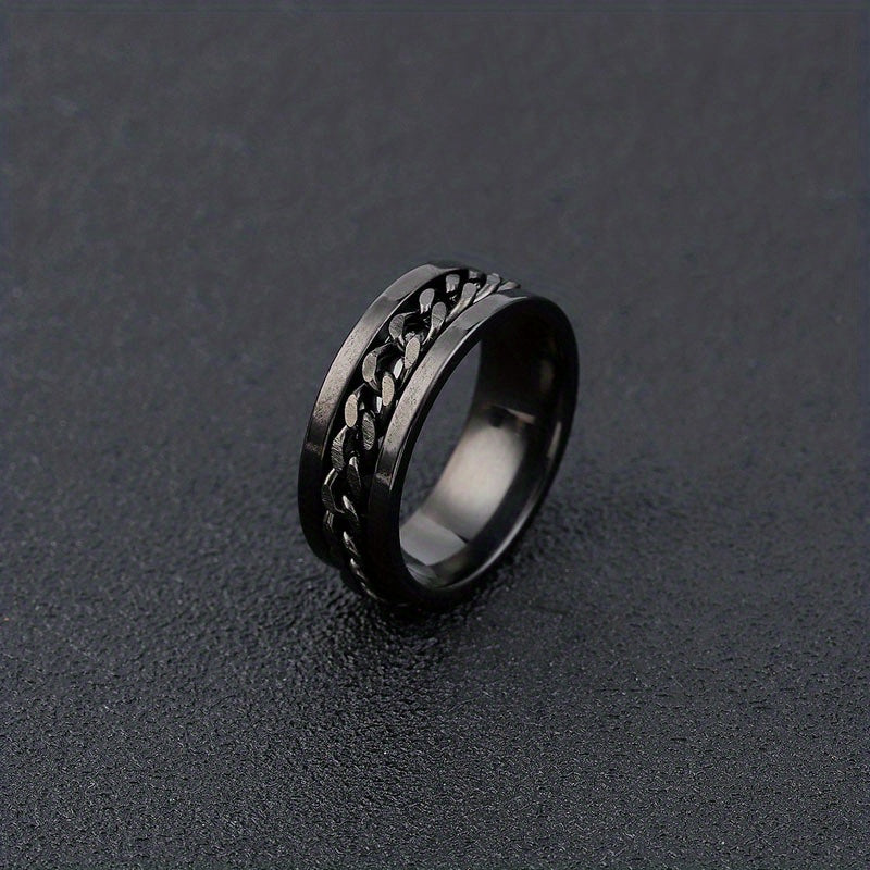 This men's ring features a unique turnable chain design crafted from durable stainless steel for a modern and stylish look.