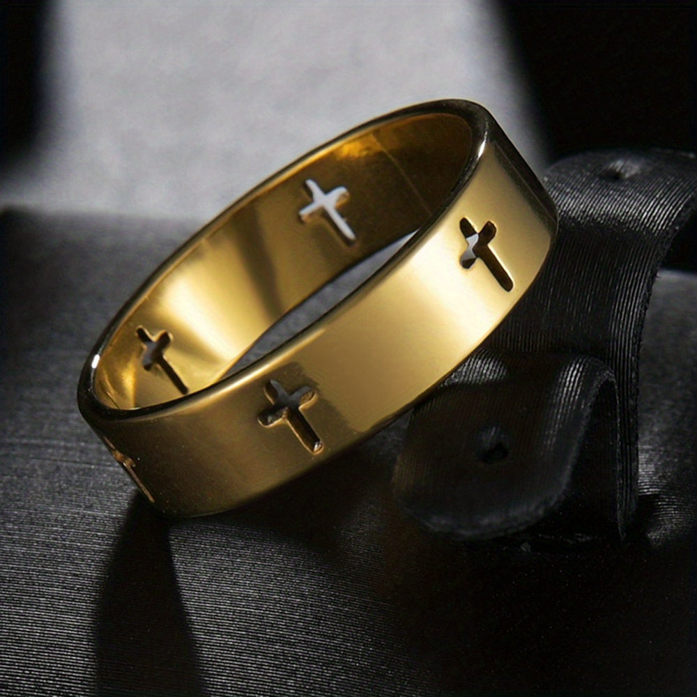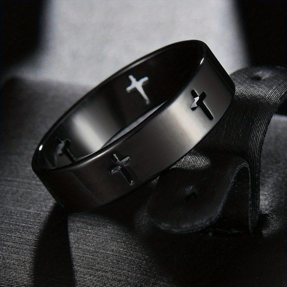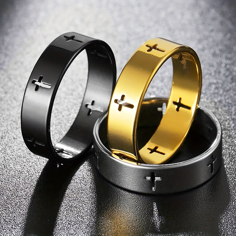 A stylish and durable stainless steel ring featuring a hollow cross design, perfect for men who appreciate modern fashion.