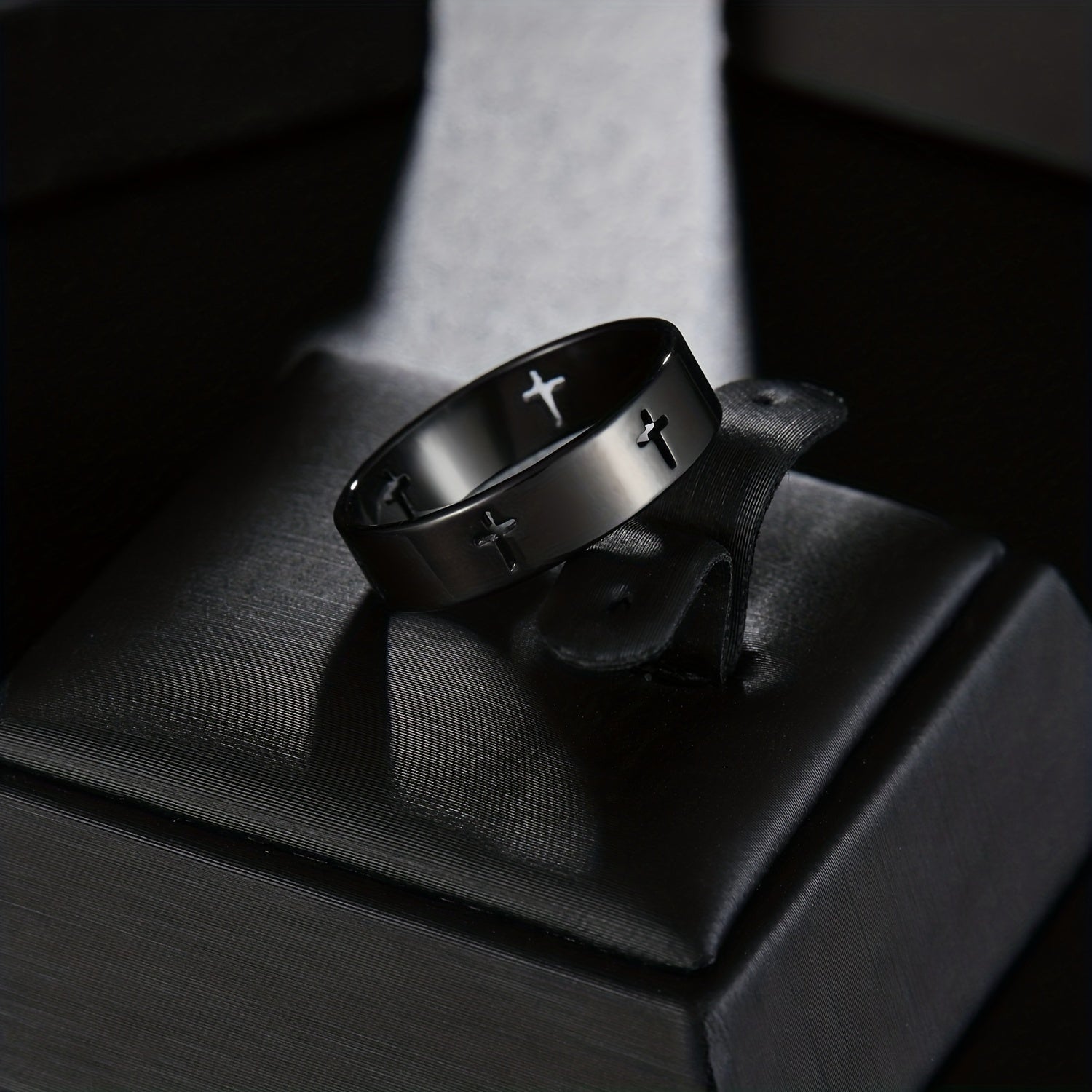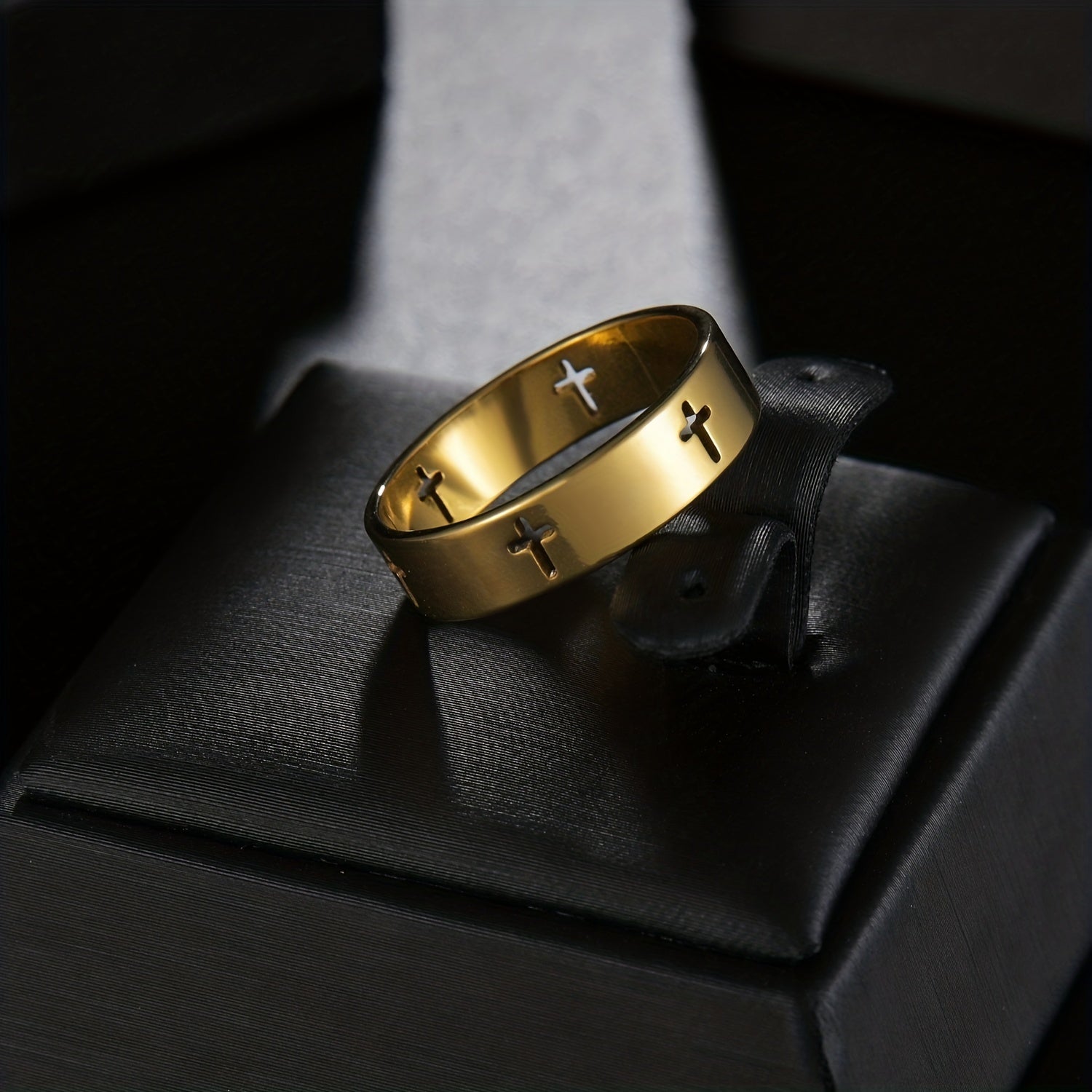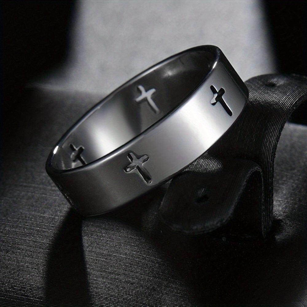 A stylish and durable stainless steel ring featuring a hollow cross design, perfect for men who appreciate modern fashion.