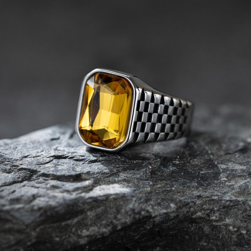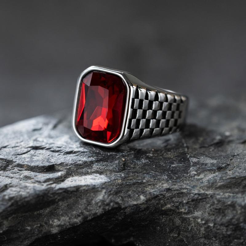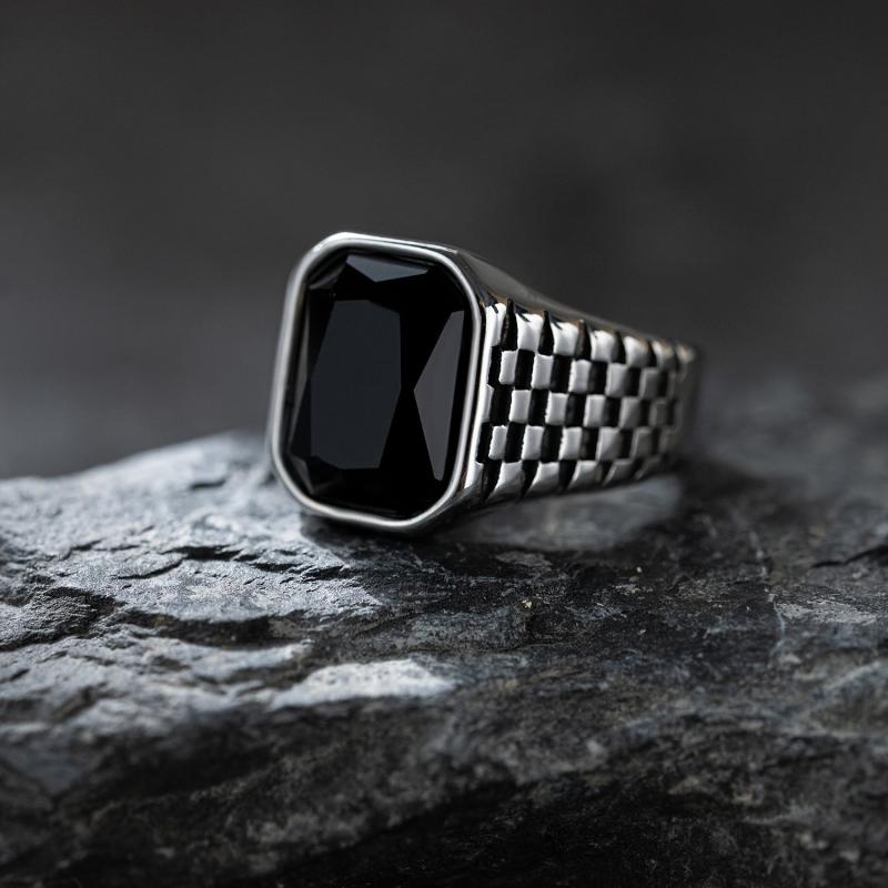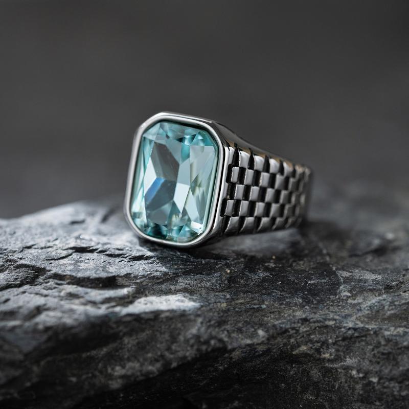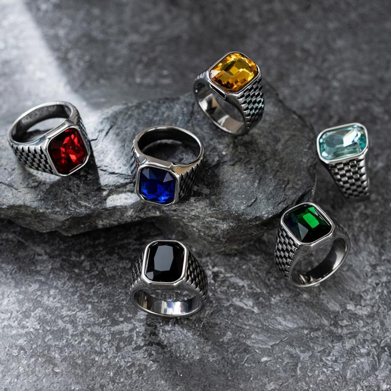 This 316L stainless steel ring features synthetic gemstones, perfect for casual attire and special occasions. The sleek design is durable and hypoallergenic.