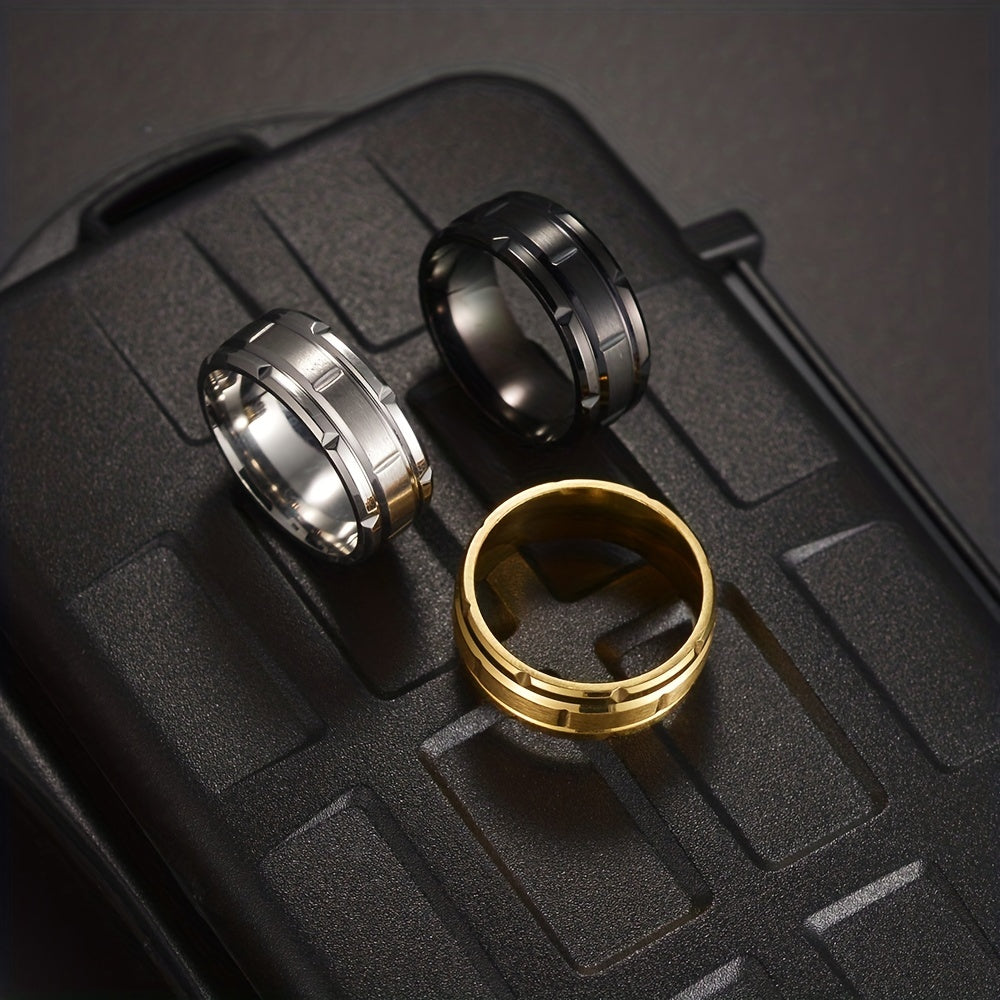 This men's ring features a sleek design made of stainless steel and vacuum electroplating. Perfect for everyday wear and casual occasions.
