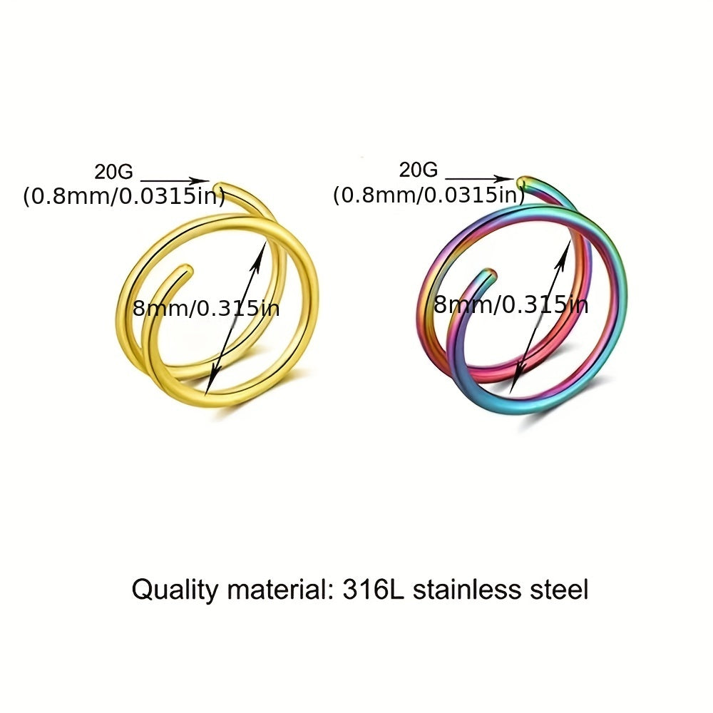 This hypoallergenic nose ring is made of stainless steel with a unique spiral spring design, suitable for men.