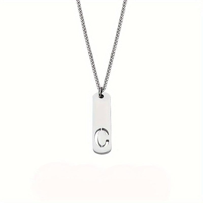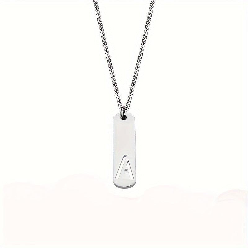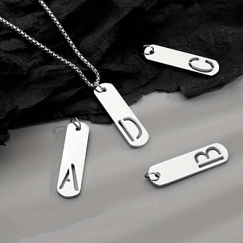 Men's Stainless Steel Square Letter Necklace - English 26 Letters