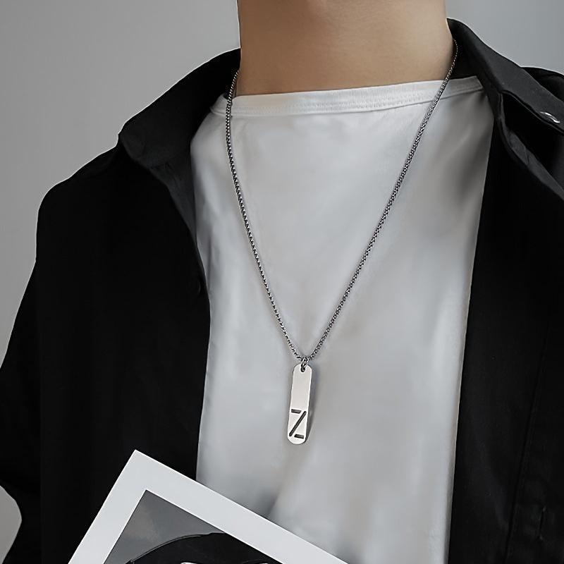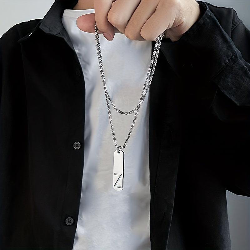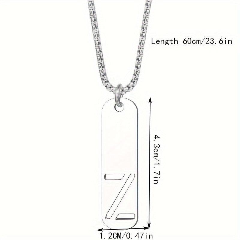 This men's stainless steel necklace features a square tag design with English 26 letters. A stylish accessory for everyday wear.