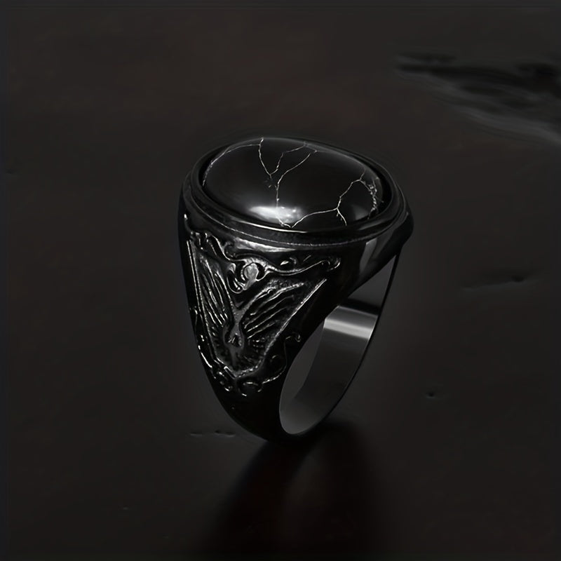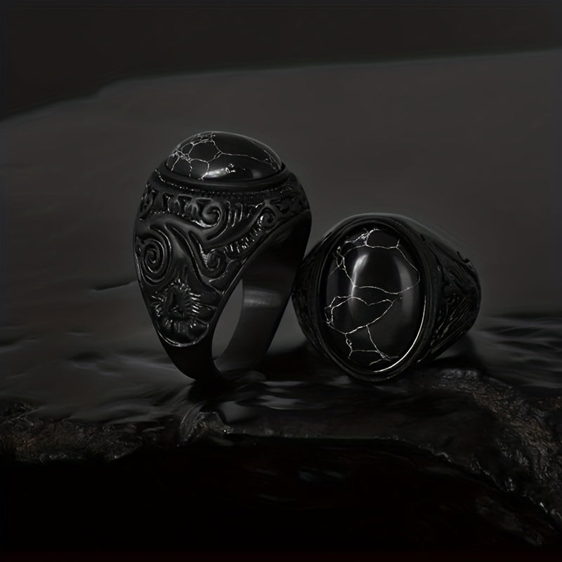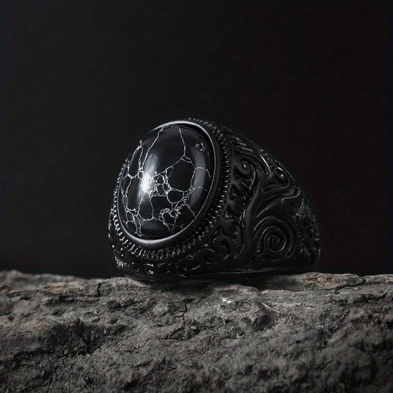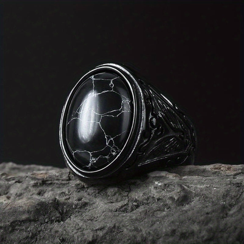 This stunning stainless steel ring features a beautiful stone centerpiece, perfect for engagements and weddings.