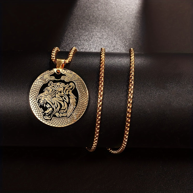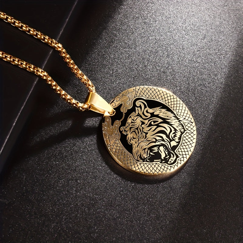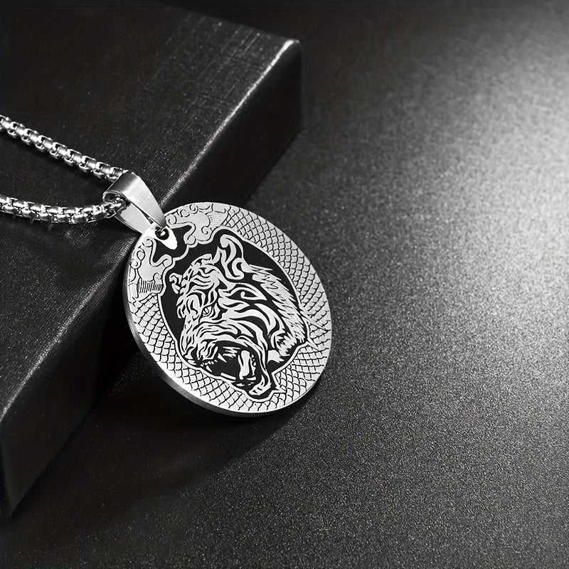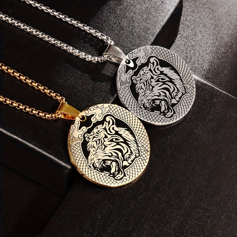 This unique pendant necklace features a stylish tiger head design, making it a perfect accessory for daily wear. Crafted from durable stainless steel, this necklace is a great gift idea for men.
