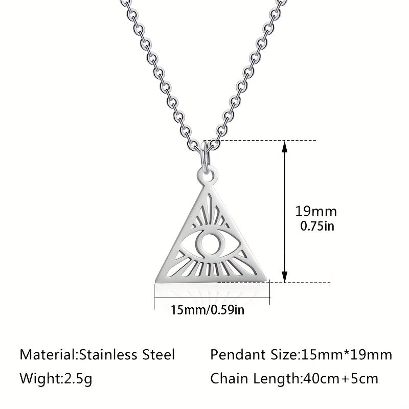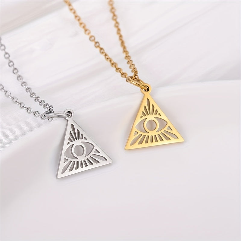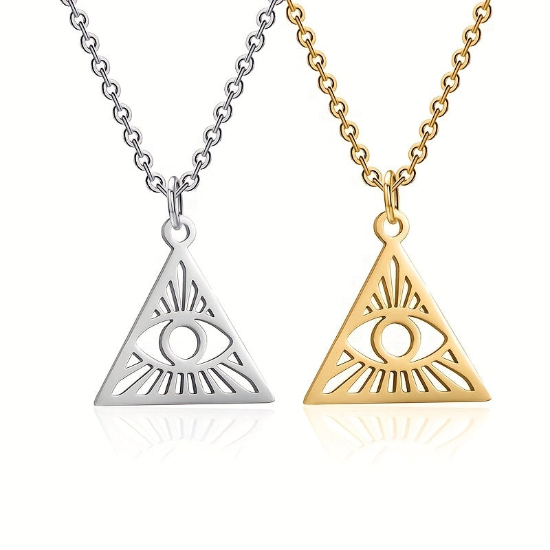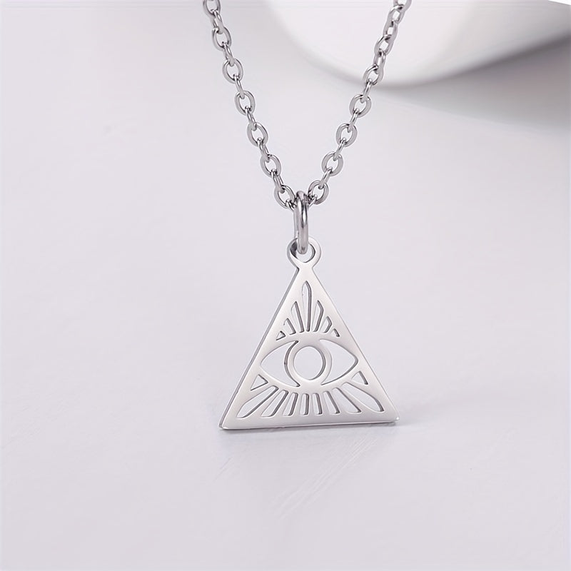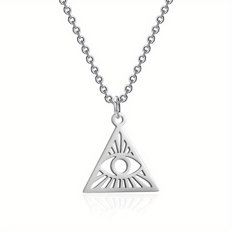 Stay trendy with this hip hop retro pendant necklace featuring a hollow triangle and devil's eye design. Made of high-quality stainless steel, perfect for everyday wear.