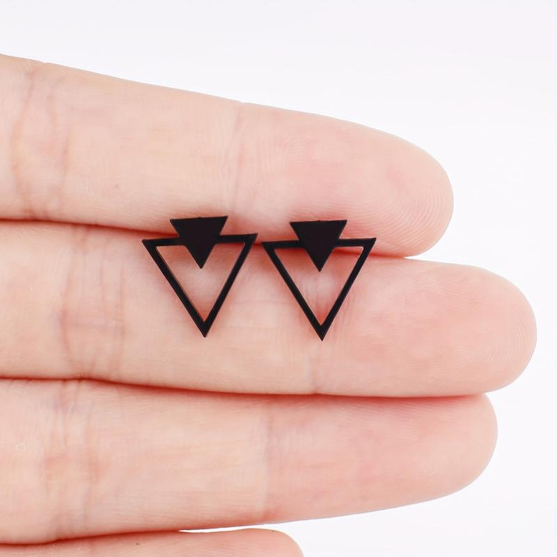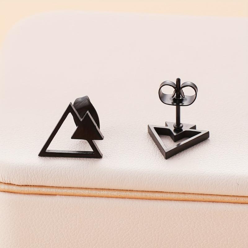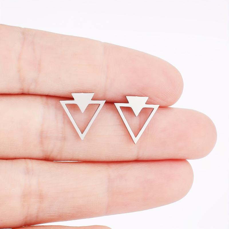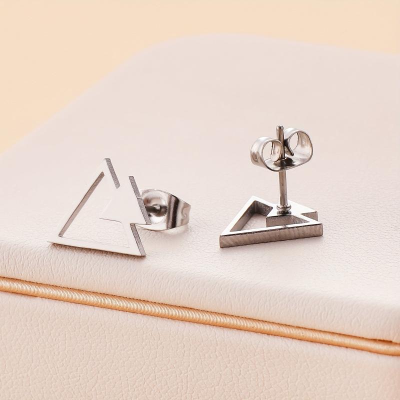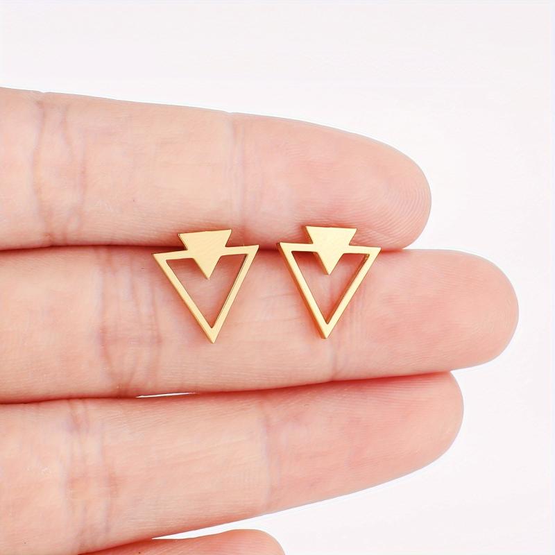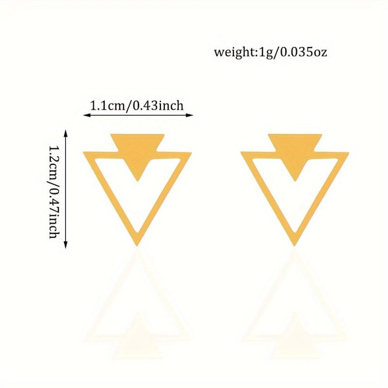 Add a touch of modern elegance to your look with these stainless steel triangle stud earrings. Perfect for daily wear and parties, these versatile earrings are plated with 18K gold for a luxurious finish.