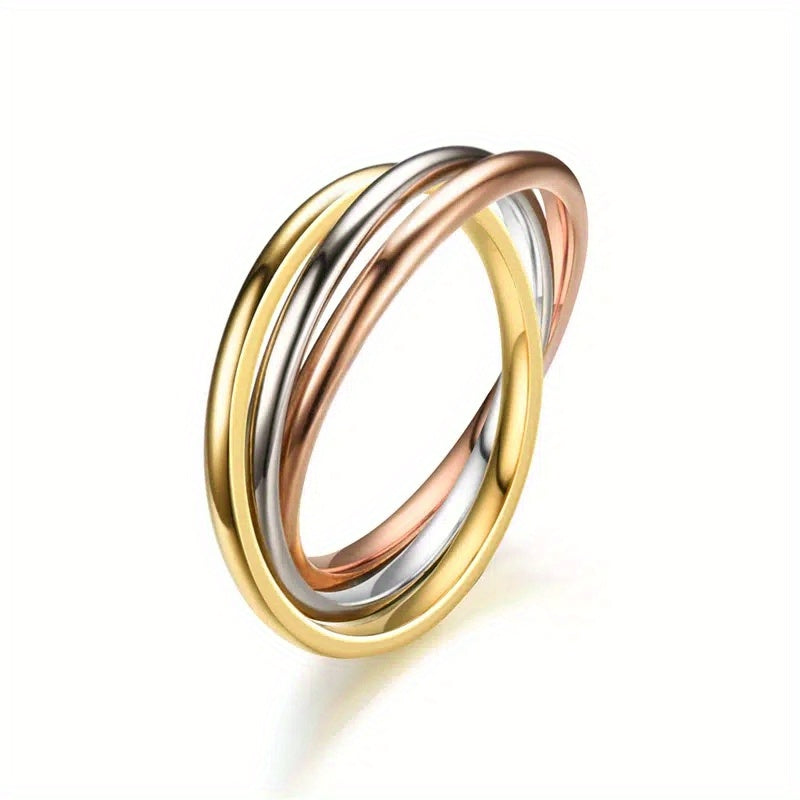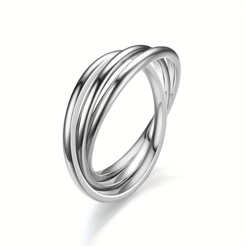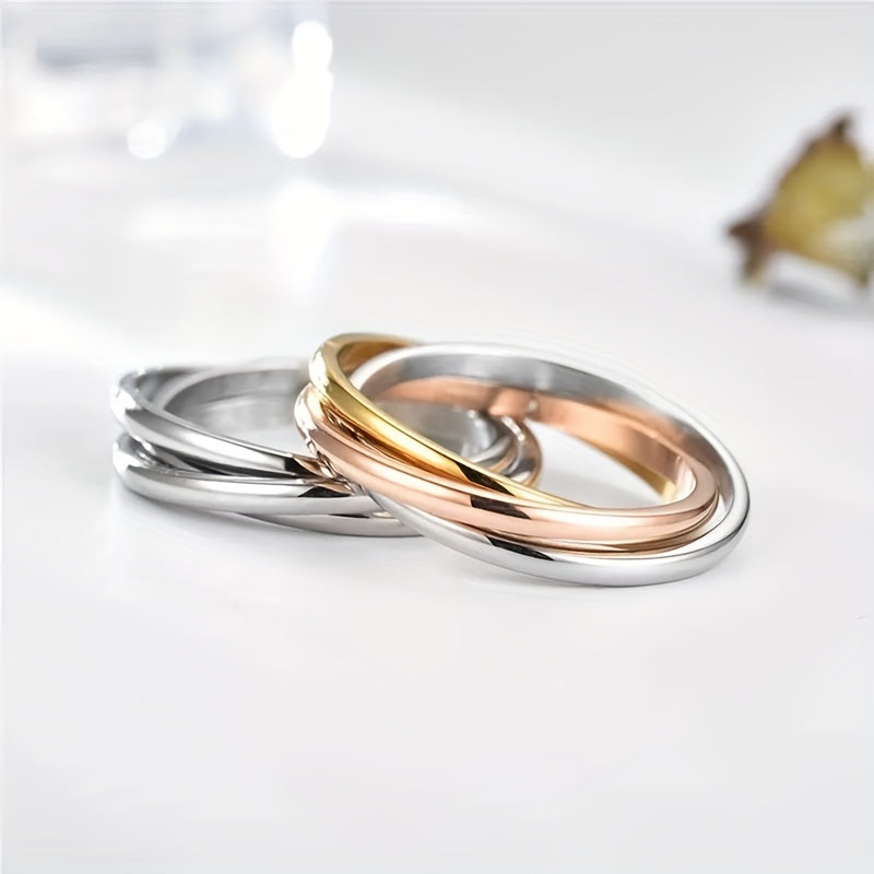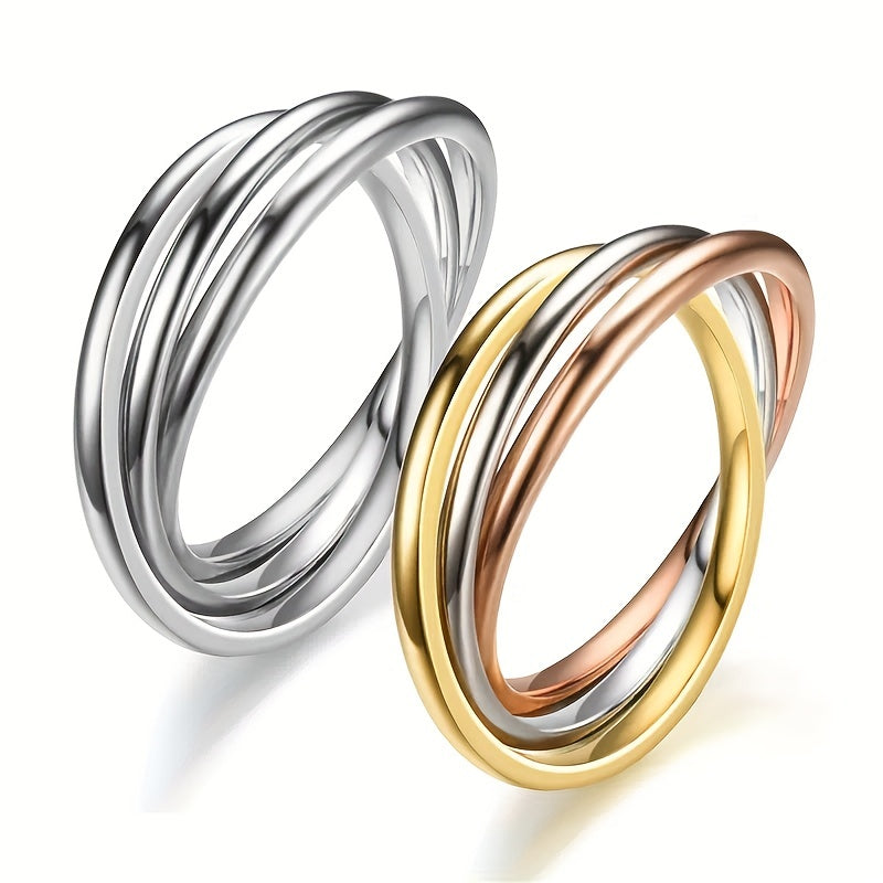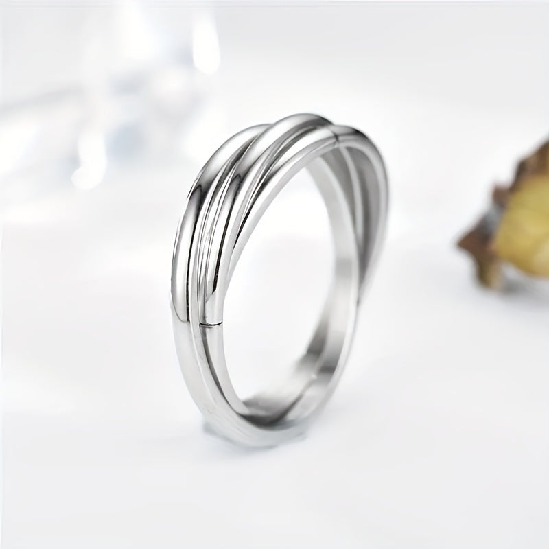 This stainless steel ring features a stylish design with three bands for a modern look.