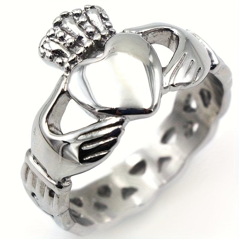 This stainless steel ring features a vintage heart design, making it a versatile accessory for daily wear. It is also a great gift option for a special occasion.