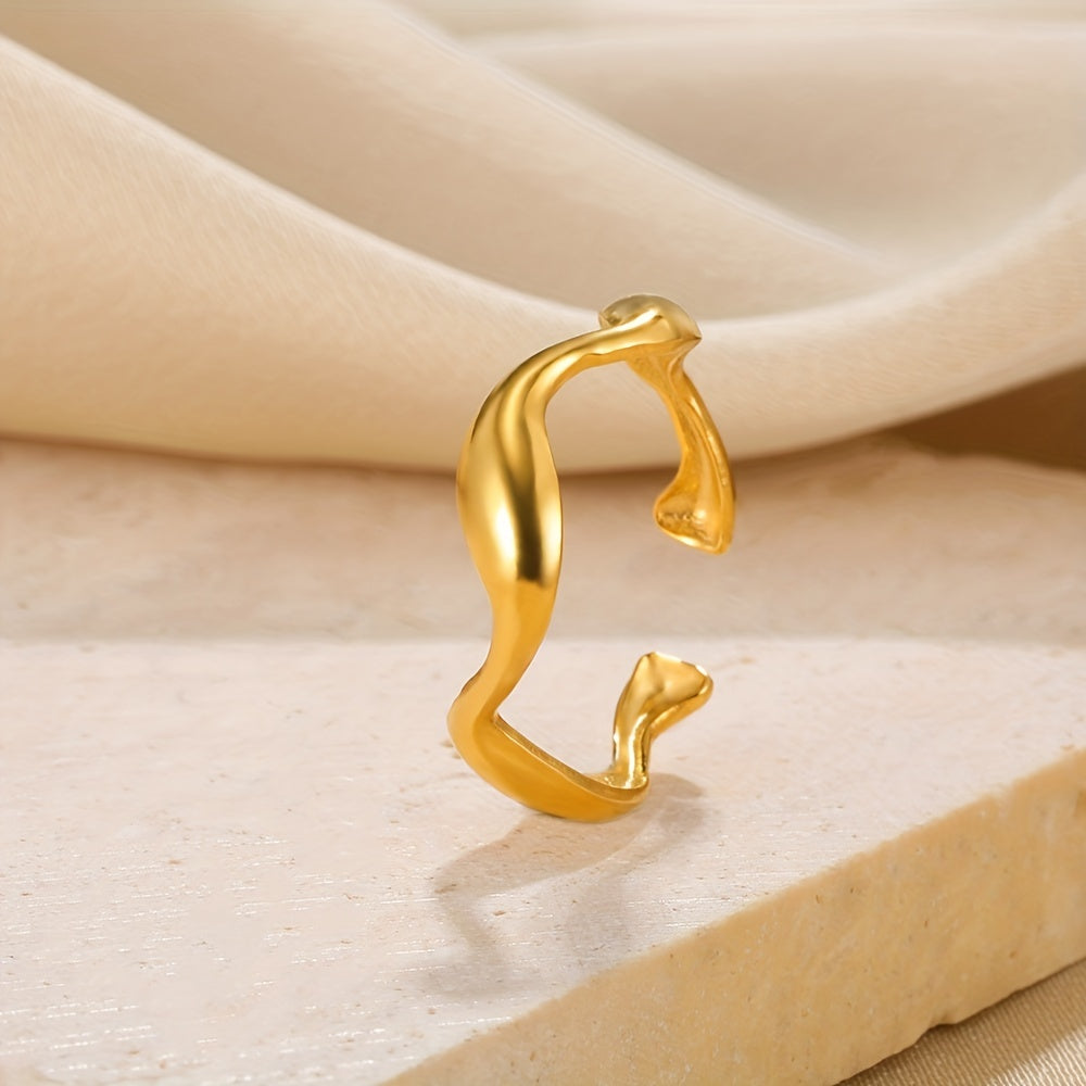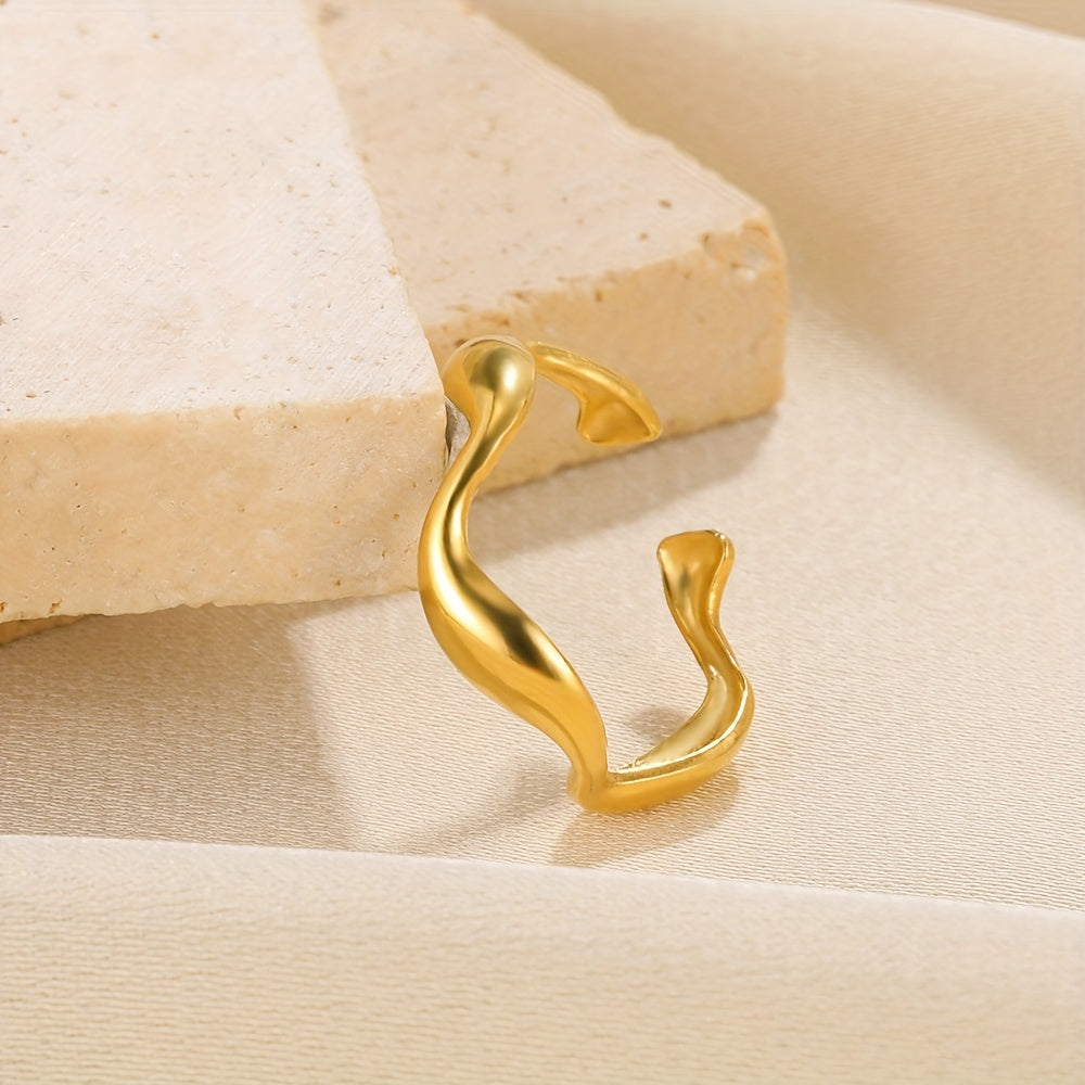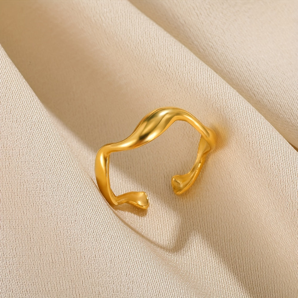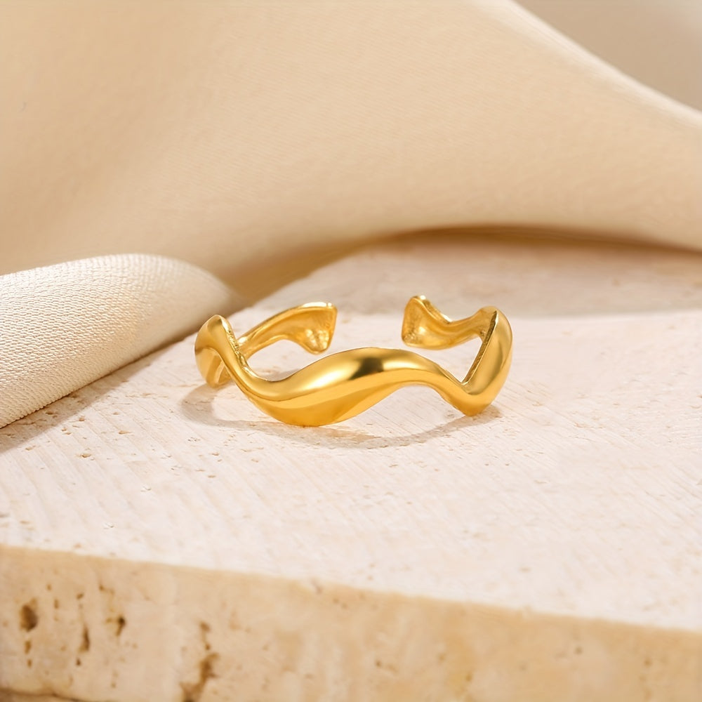 Add a touch of modern style to your look with this geometric wavy ring made of durable stainless steel. The adjustable opening ensures a comfortable fit.