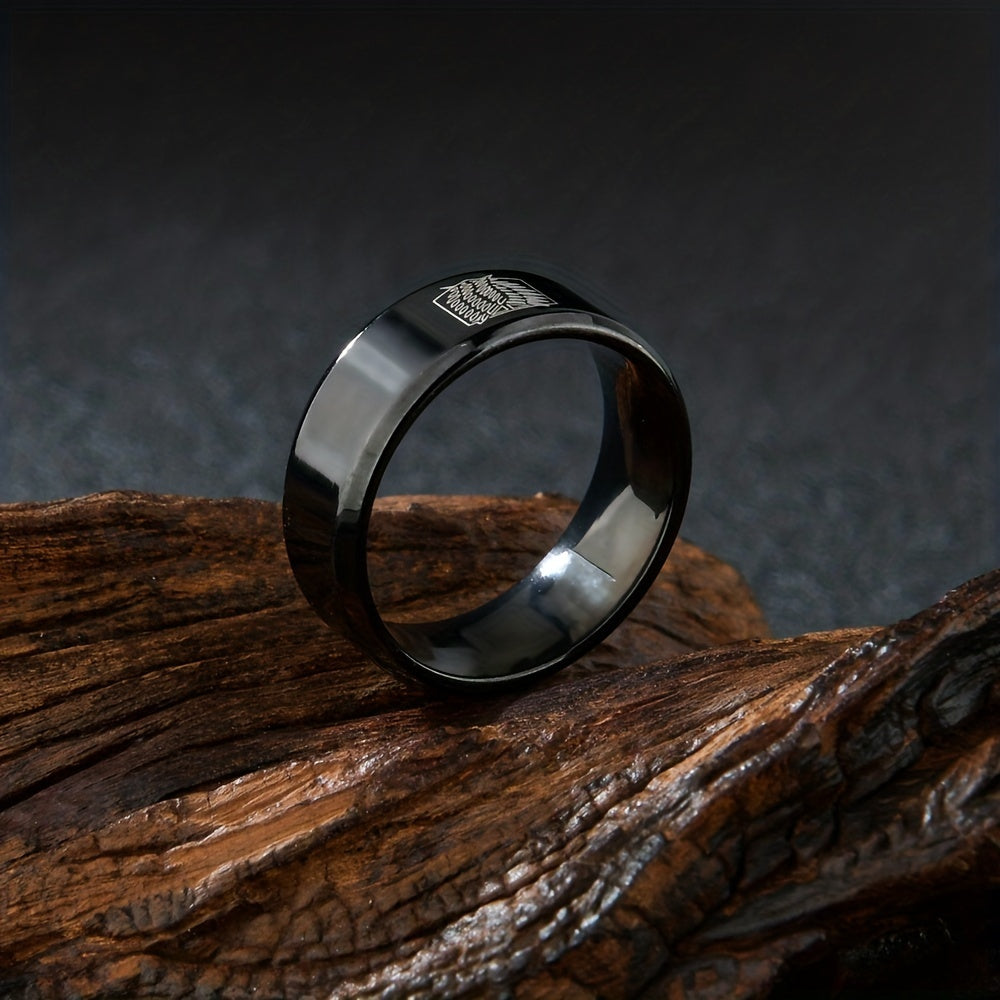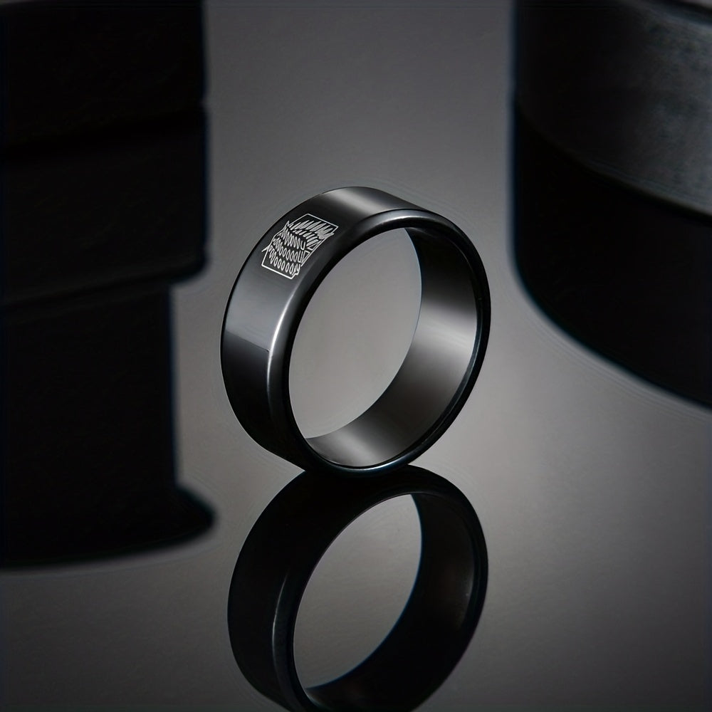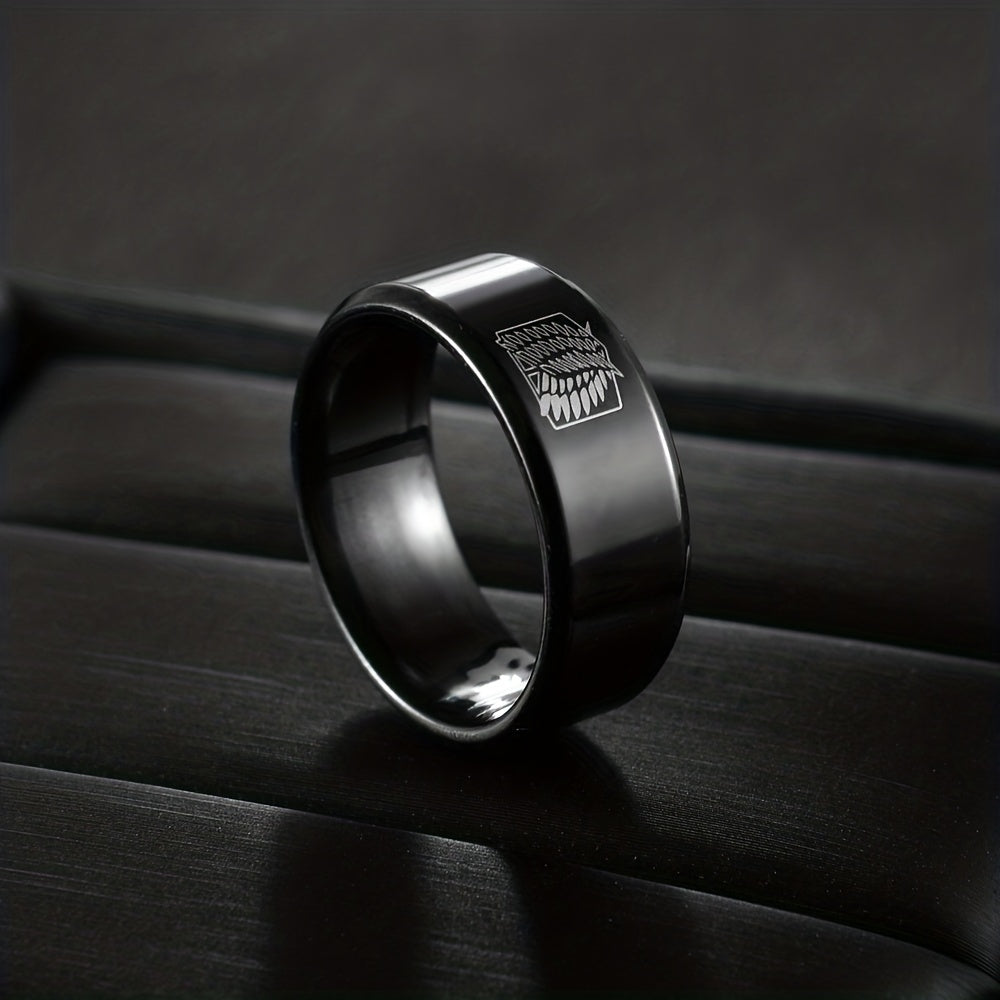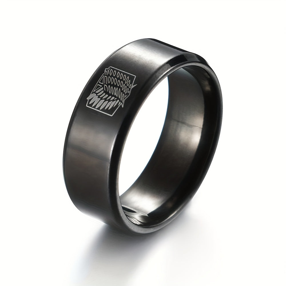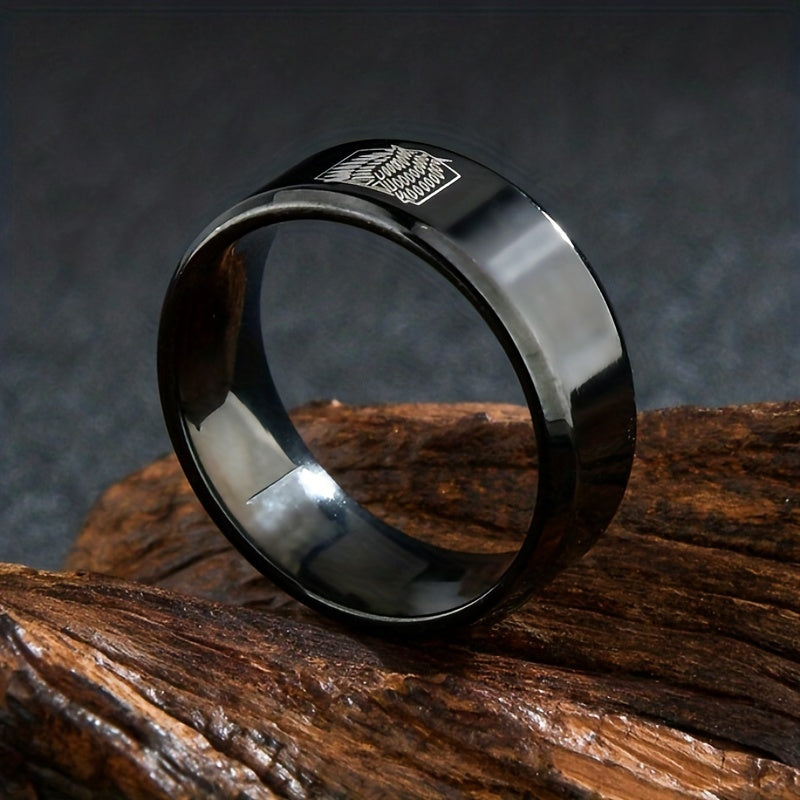 Enhance your style with this glossy oblique ring featuring a unique stainless steel wing feather pattern design.