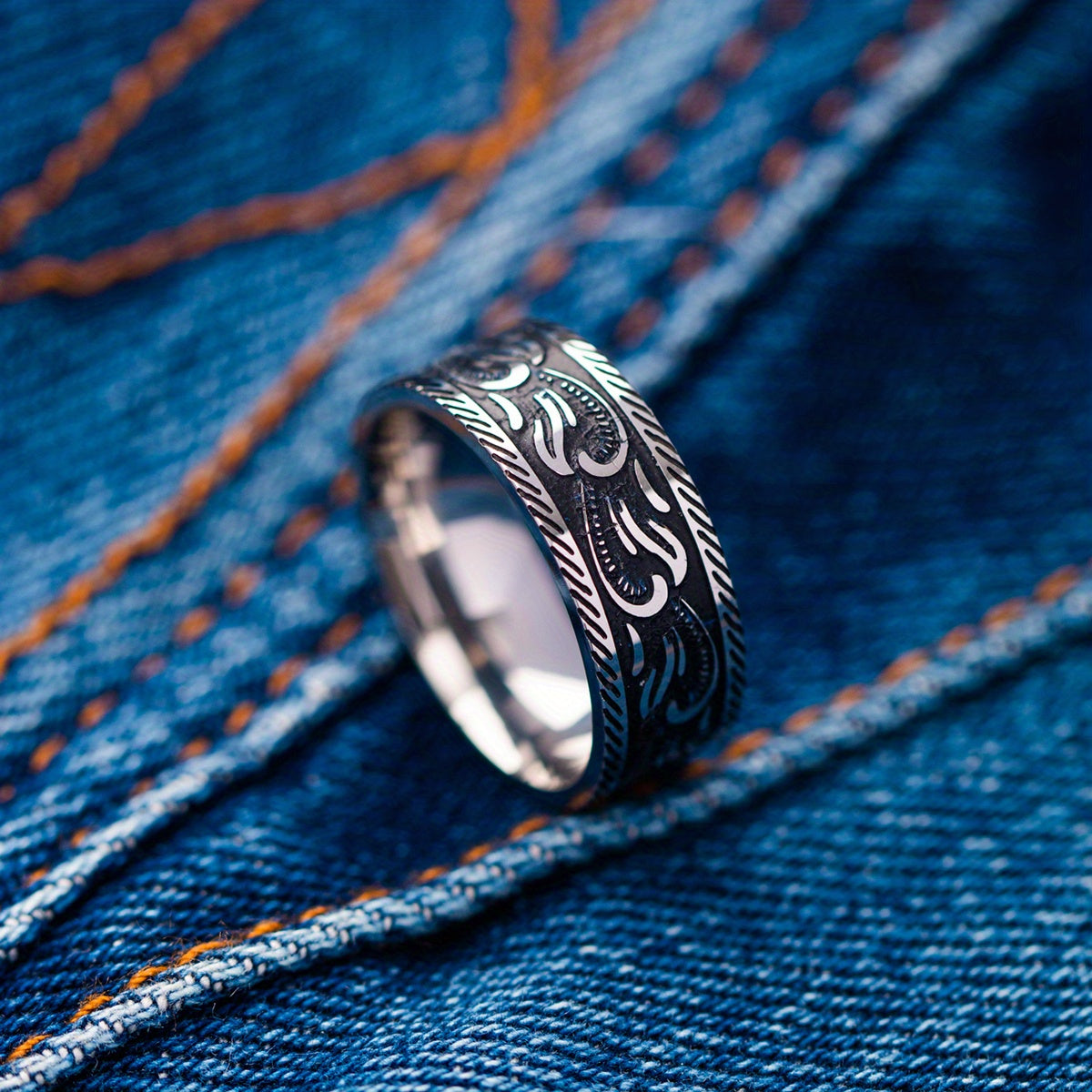 This unique stainless steel ring features a design of a wheel, horse paw, vine, and lightning. Perfect for couples or individuals who love nature and animals.