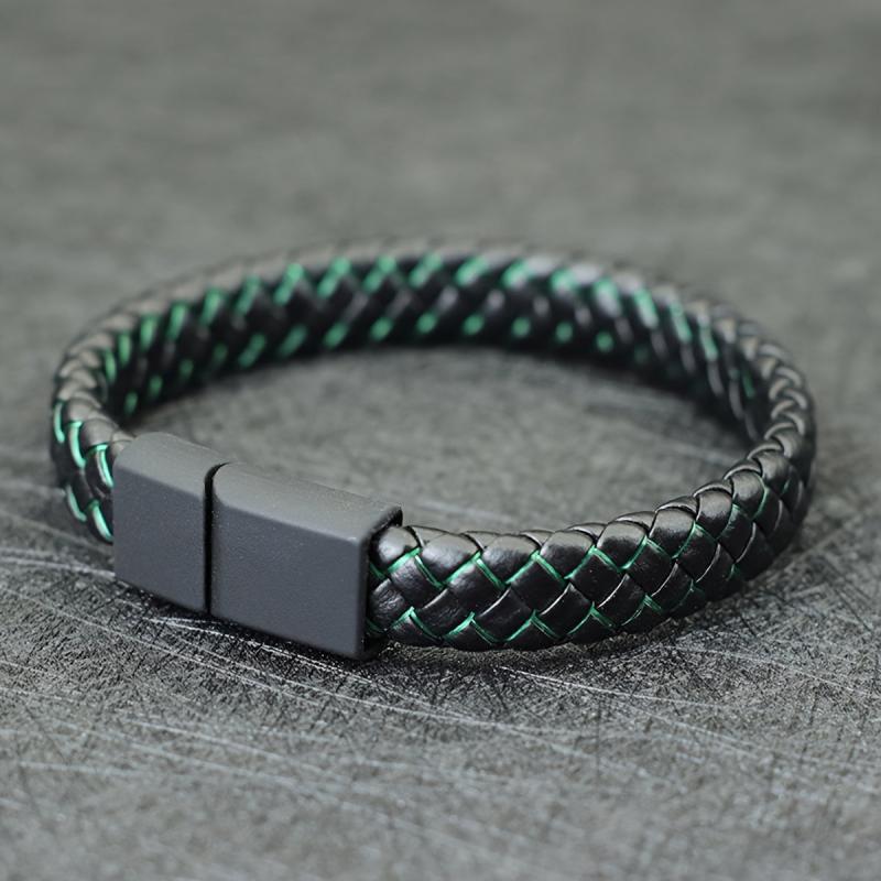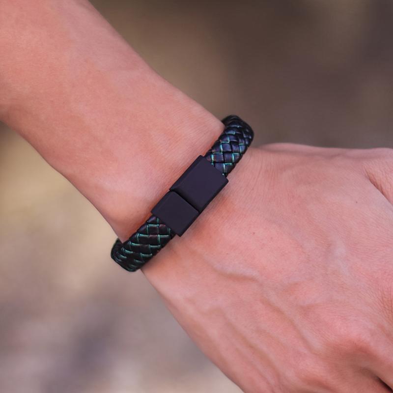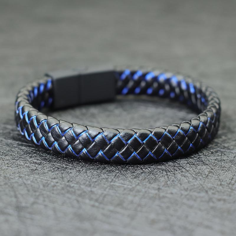 Add a touch of style to your casual attire or party outfit with this braided faux leather bracelet featuring teal accents.