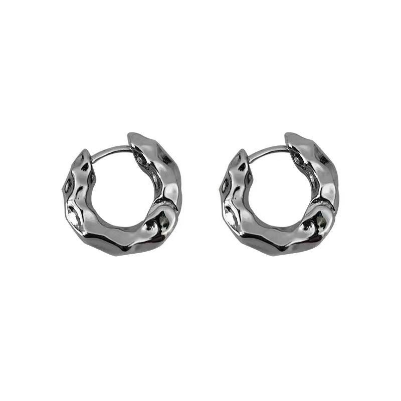 Add a touch of style to your outfit with these textured alloy metal circle earrings. Perfect for men or couples.