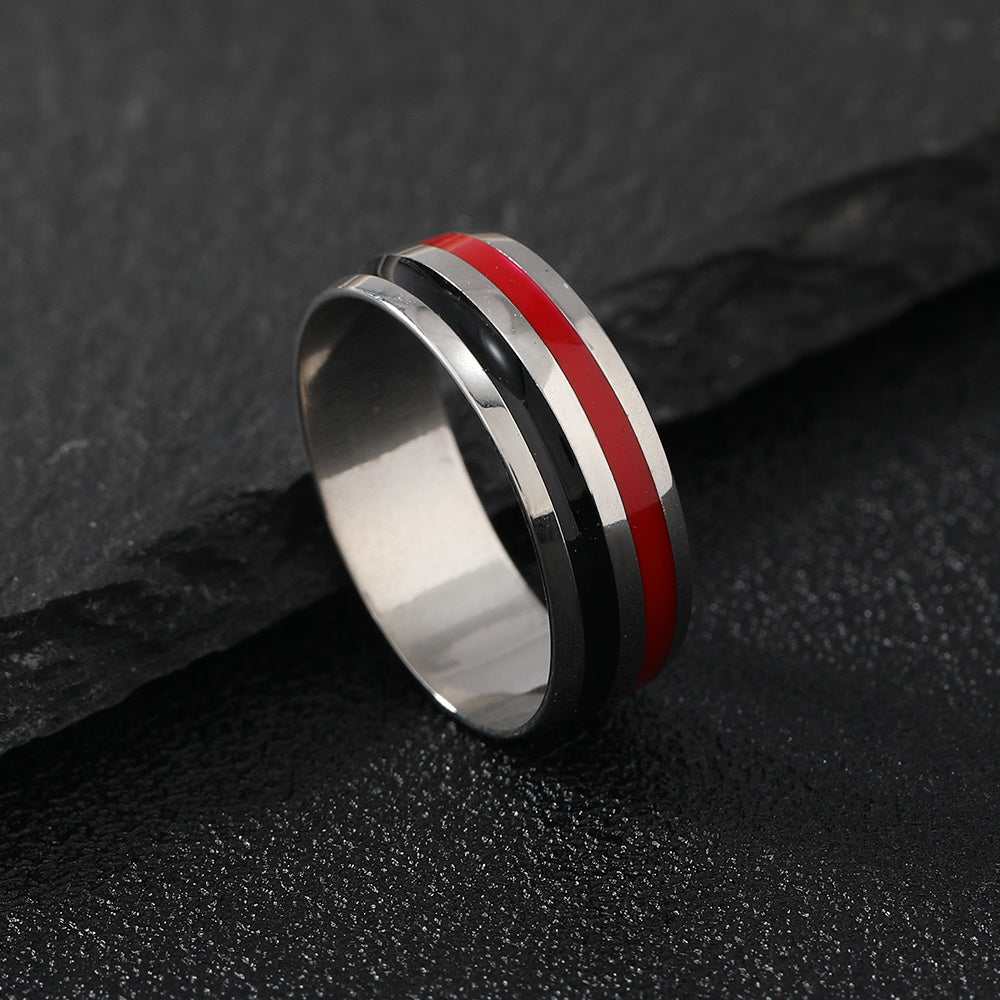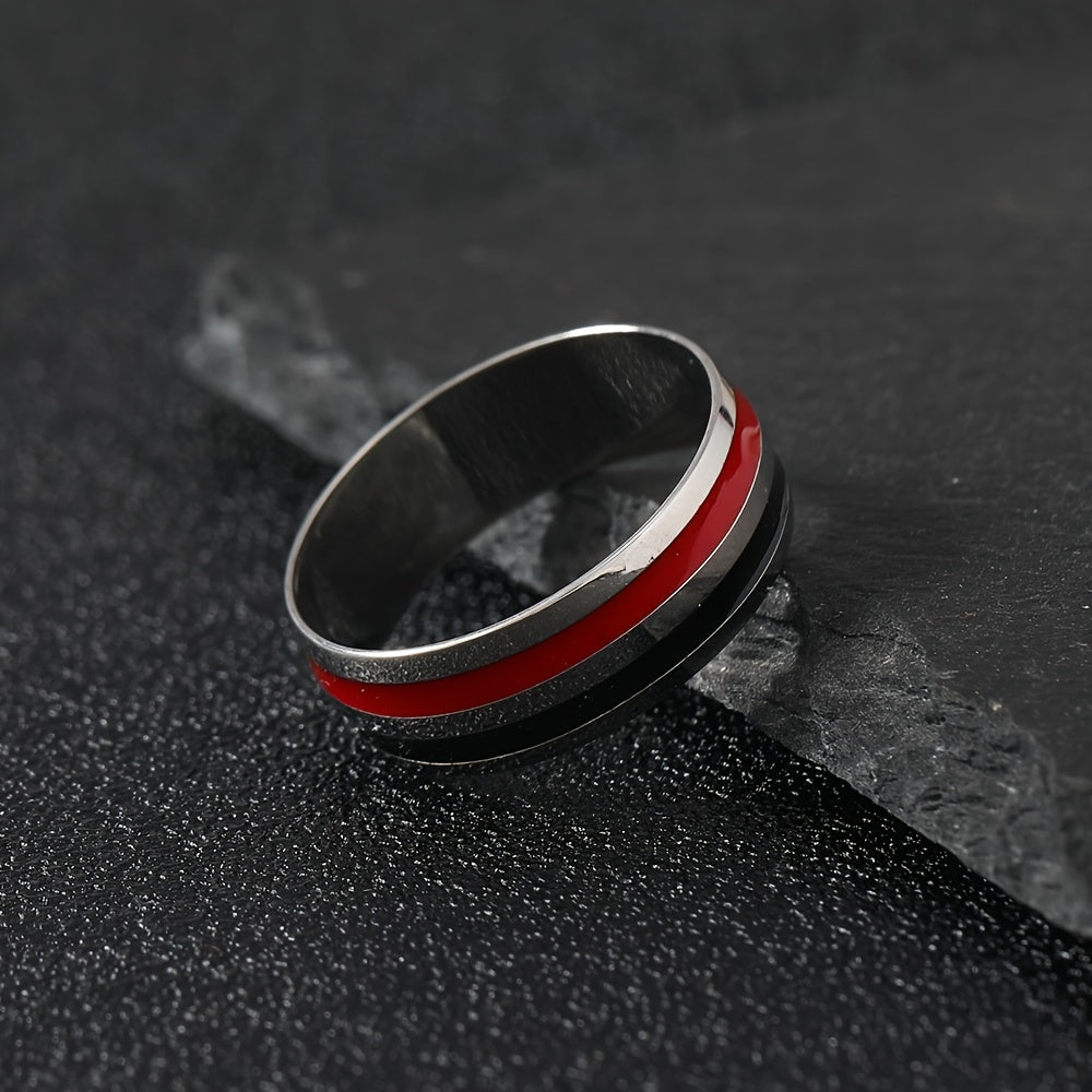 This men's ring features a unique thin line design and a polished finish for a stylish look.