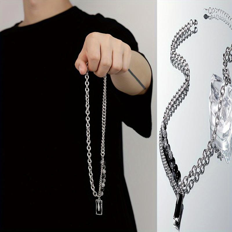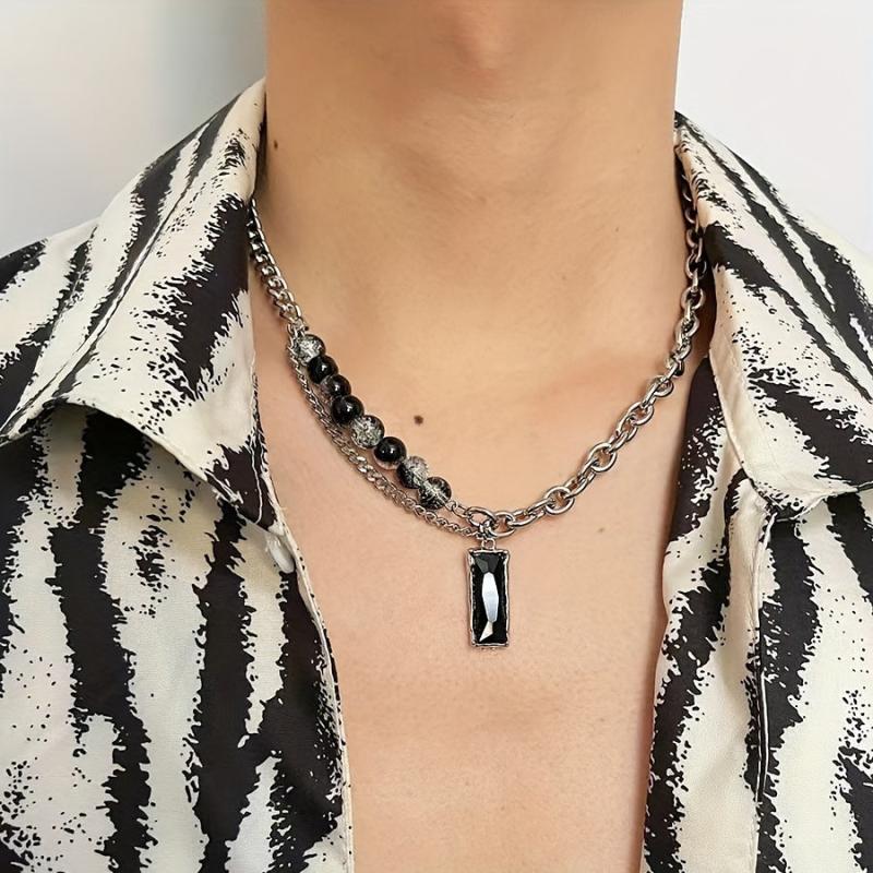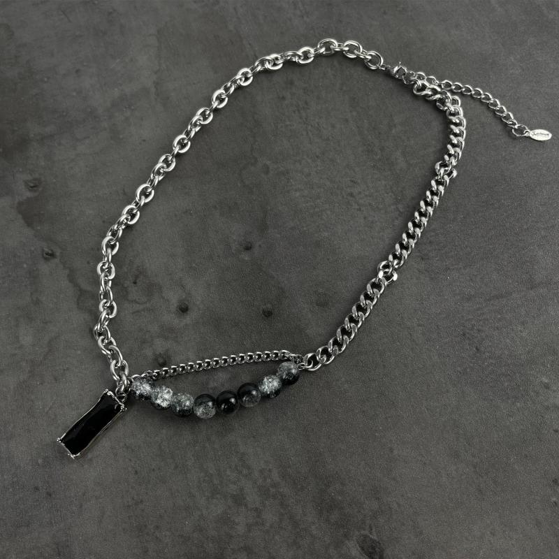 This minimalist titanium necklace features a unique ice cracked hexagonal pendant that is perfect for both formal and casual wear. The durable and tarnish-resistant chain ensures long-lasting quality.