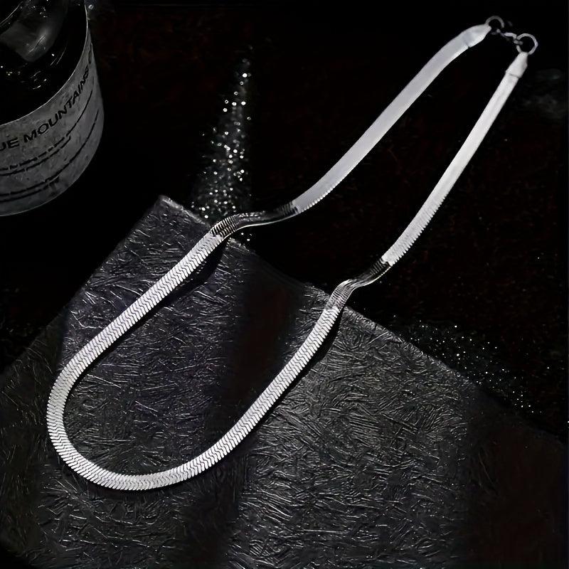 Elevate your style with this silvery titanium stainless steel snake bone necklace. Hypoallergenic and washable, perfect for nightclubs, parties, weddings.