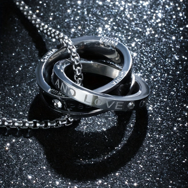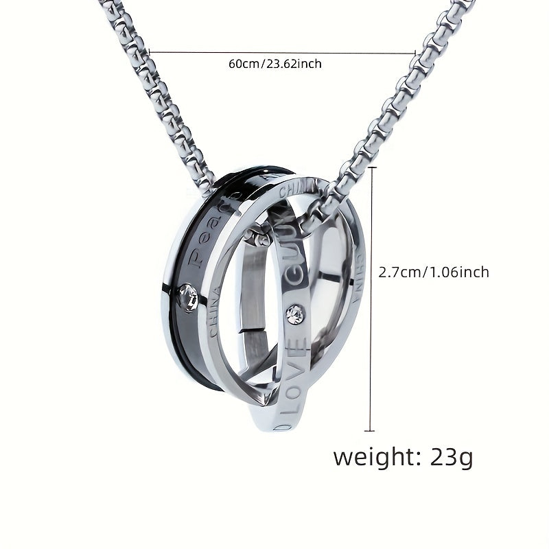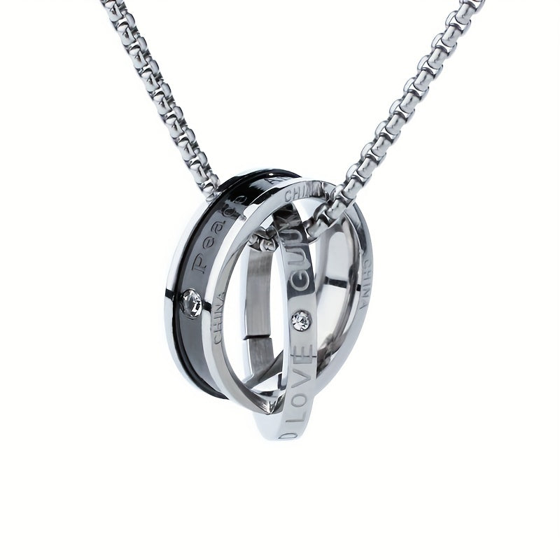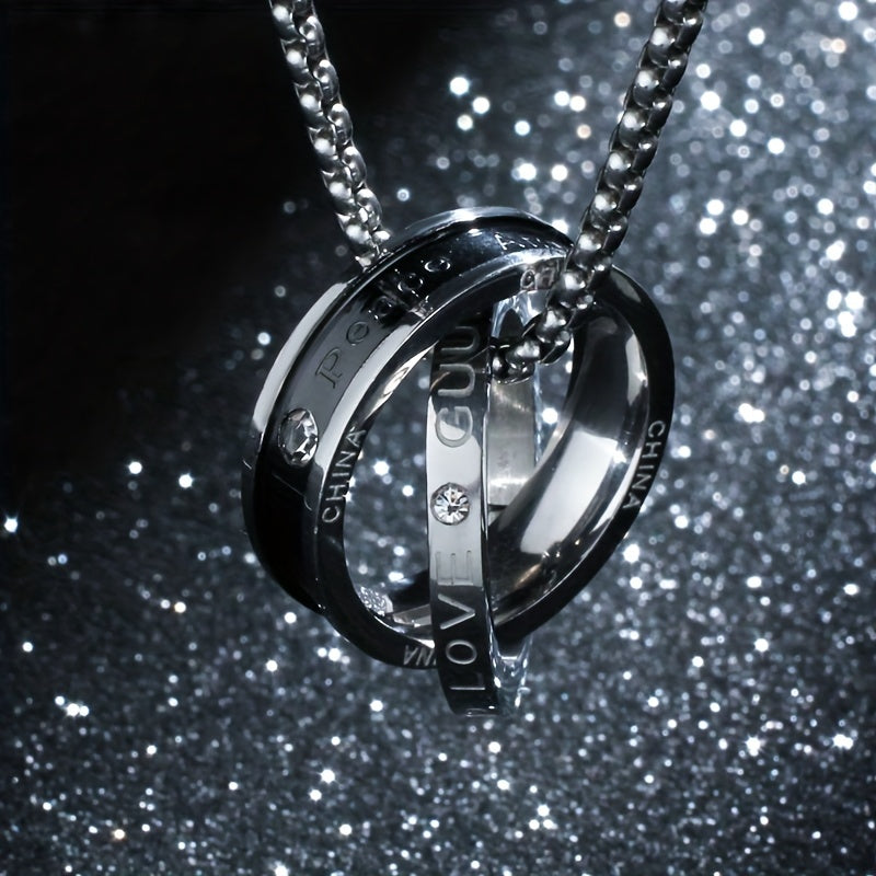 This trendy necklace features a double ring pendant made of titanium steel, perfect for street hip hop style. Ideal for couples or as a fashion accessory.