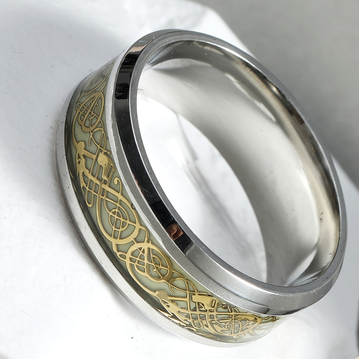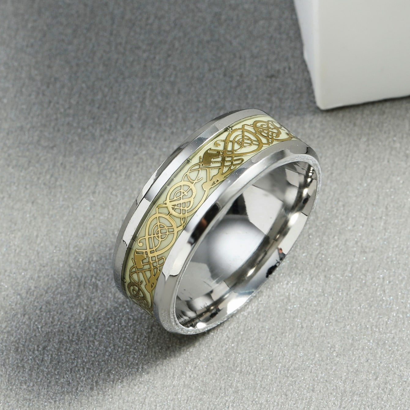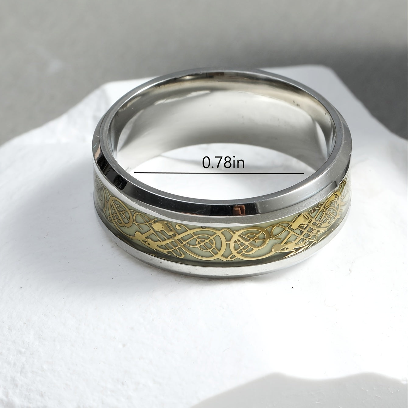 Stand out with this unique titanium steel ring featuring a luminous dragon pattern. Perfect for casual wear with a touch of creativity.