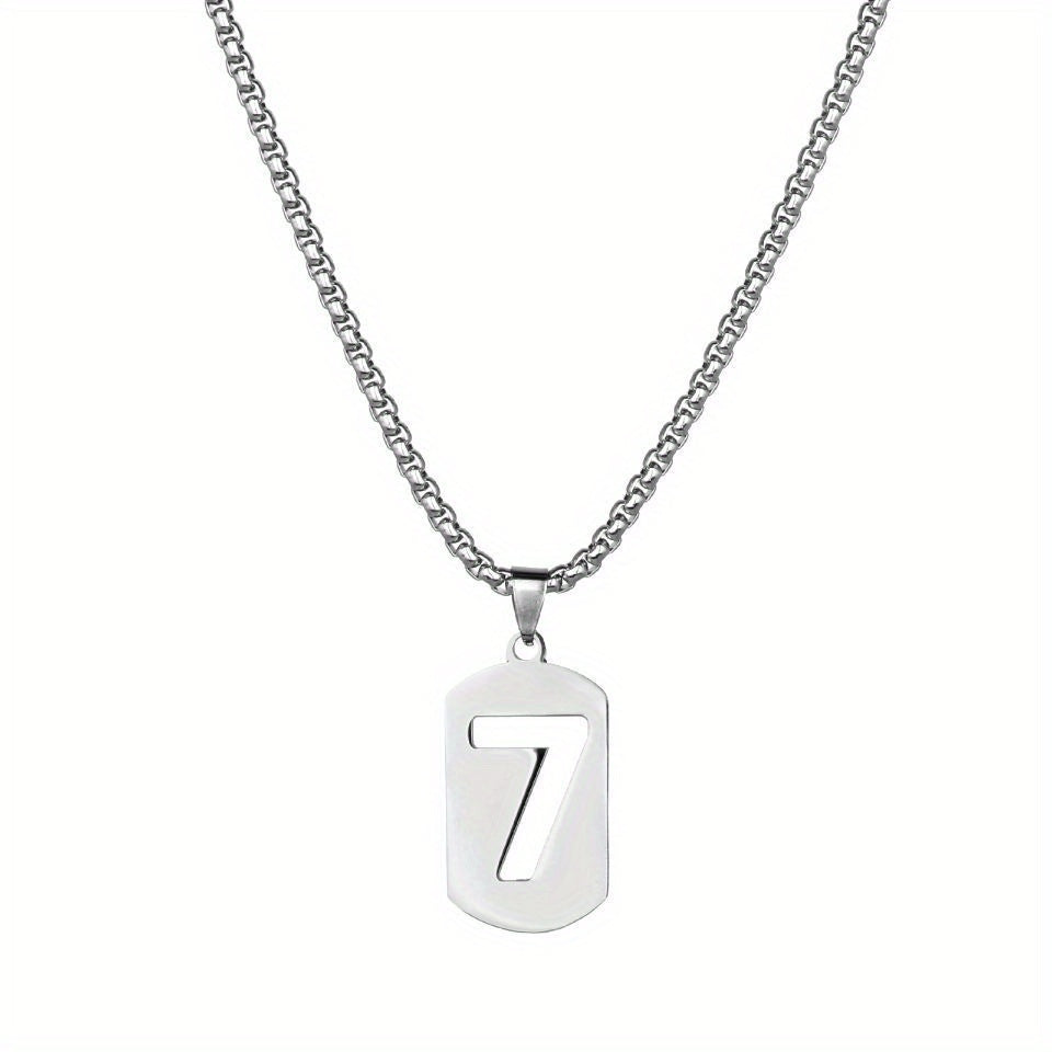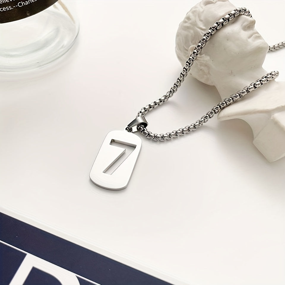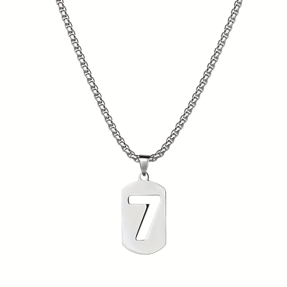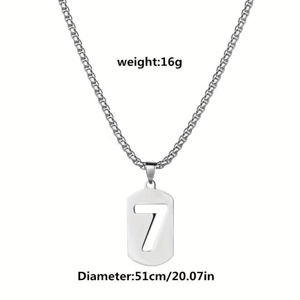 This stainless steel necklace features a lucky 7 word pendant, perfect for men and women alike. The clavicle chain design adds a touch of style to any outfit.