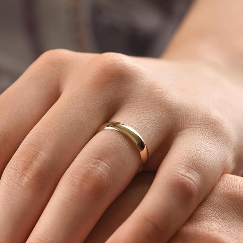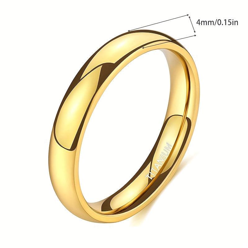 This titanium steel ring features an 18K plated 4mm band that is perfect for engagements, promises, weddings, and more. Comfort fit design for all-day wear.