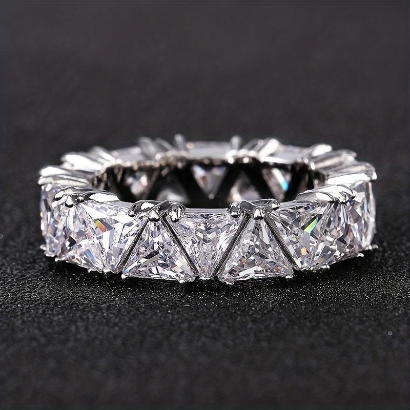 This stylish men's ring features a synthetic cubic zirconia in a triangle design, perfect for daily wear or special occasions. Ideal gift for birthdays, anniversaries, and holidays.