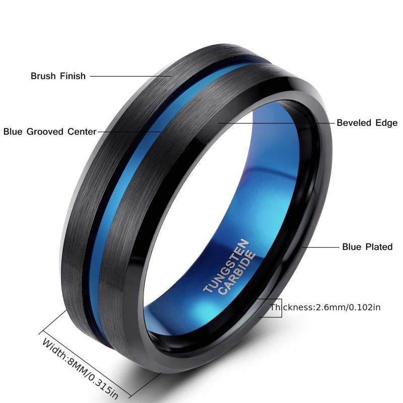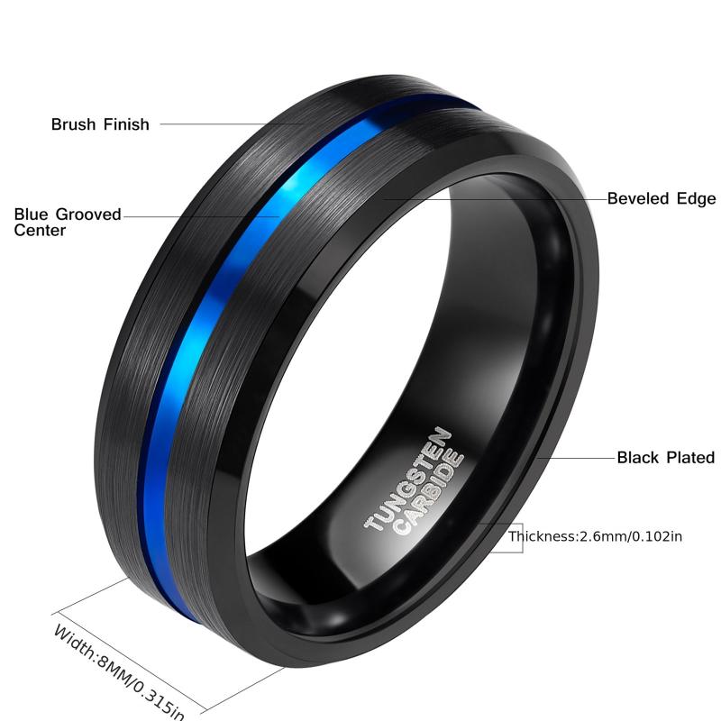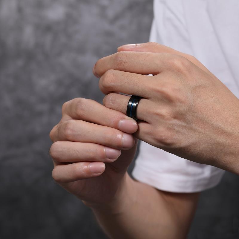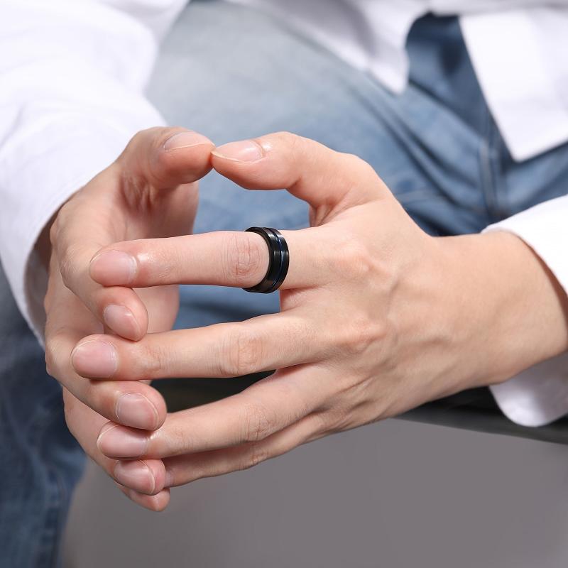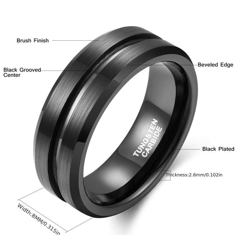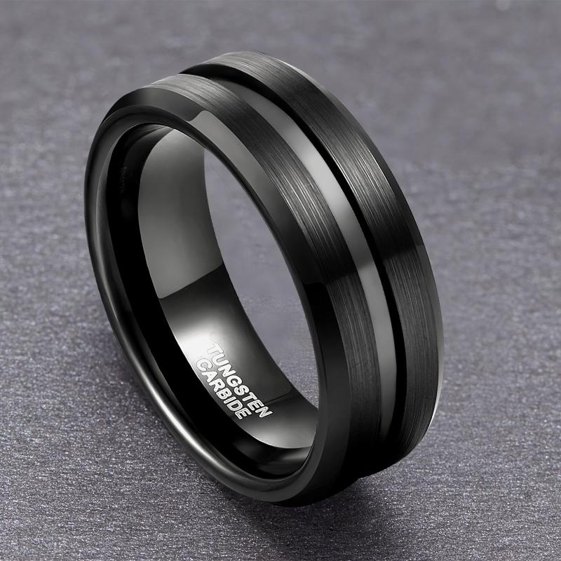 This men's ring features a stylish two-tone design with a grooved pattern, crafted from durable tungsten steel.