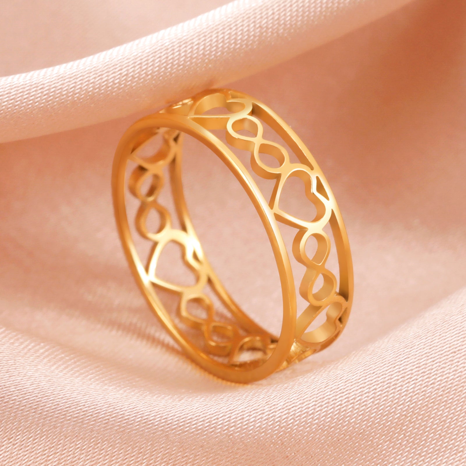 This fashionable ring for men features a heart-shaped design, made of stainless steel and finished in gold. Perfect for romantic occasions like weddings.