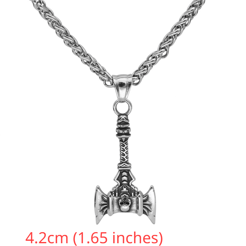 This reversible necklace features a skull and double ax design, perfect for men who love Viking-inspired jewelry. It makes a great addition to any outfit and is ideal for those who appreciate hip hop accessories.