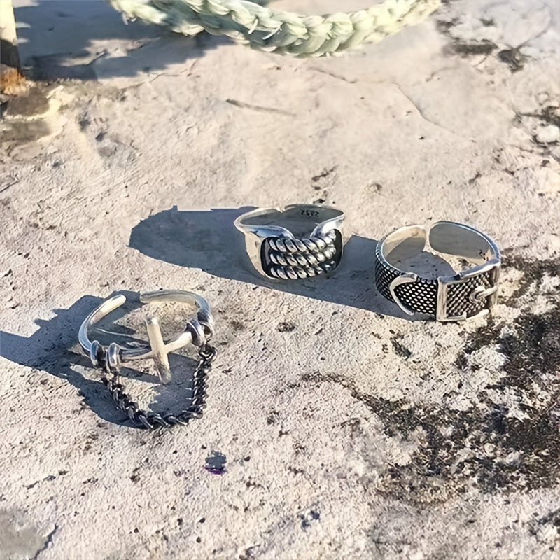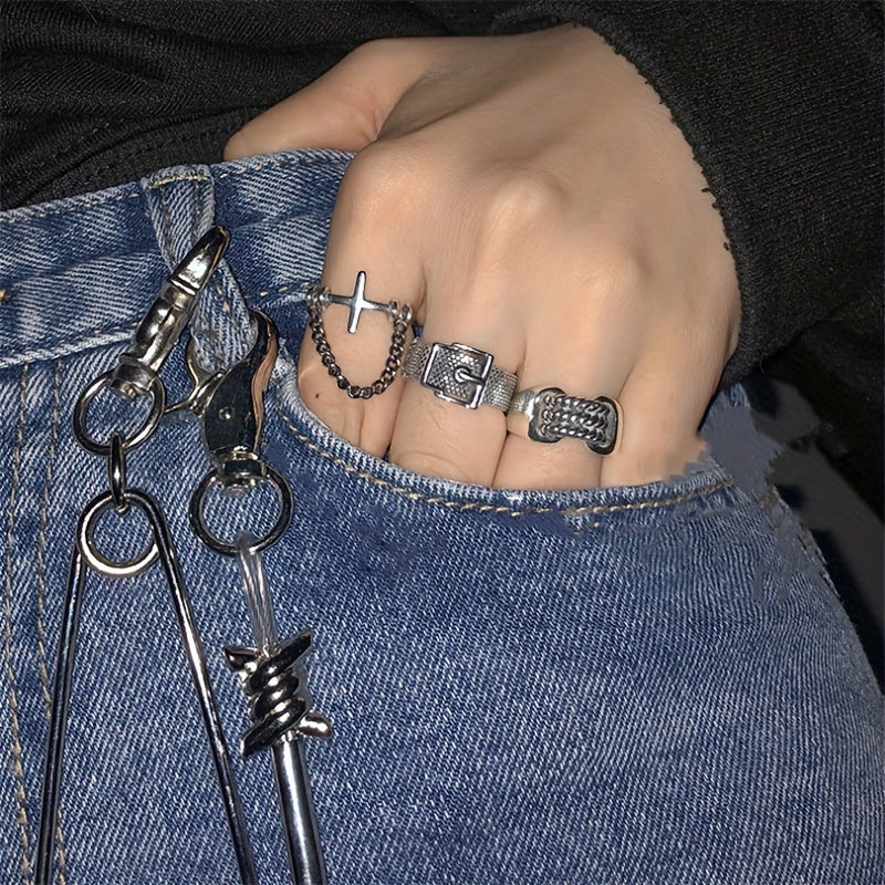 Add a touch of creativity with this unique vintage distressed belt cross chain ring. Perfect for men who love a vintage style with a modern twist.