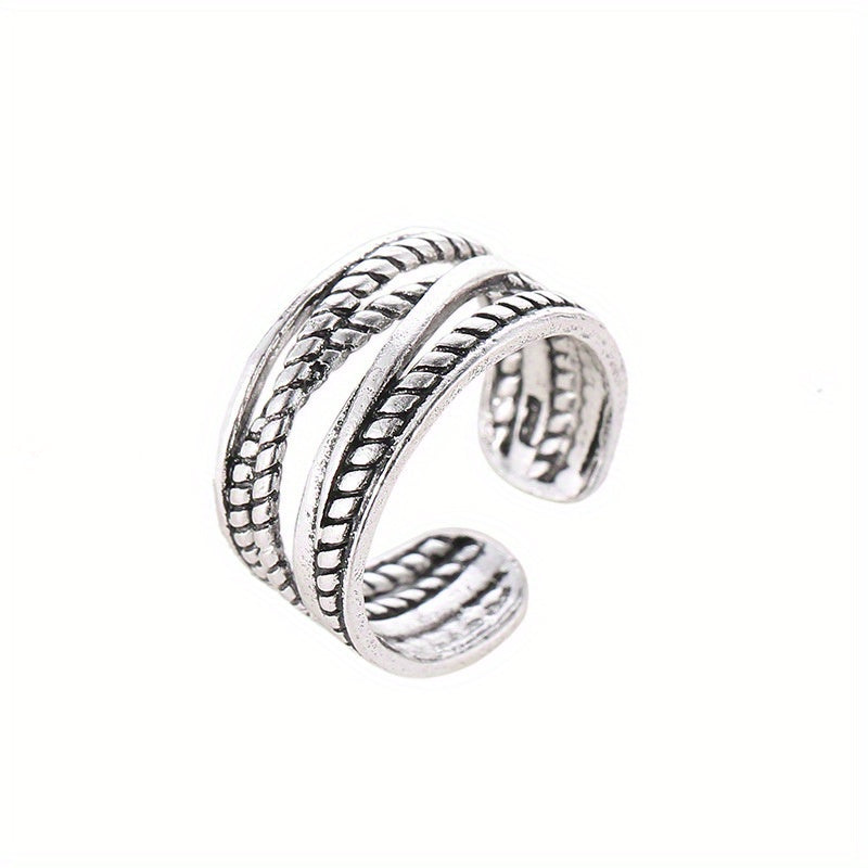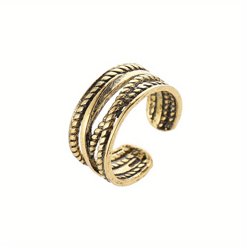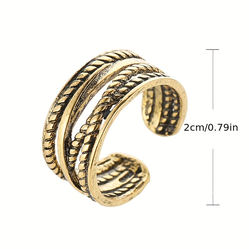 Add a touch of style with this vintage-inspired ring crafted from hemp rope in a design featuring both golden and silvery accents.