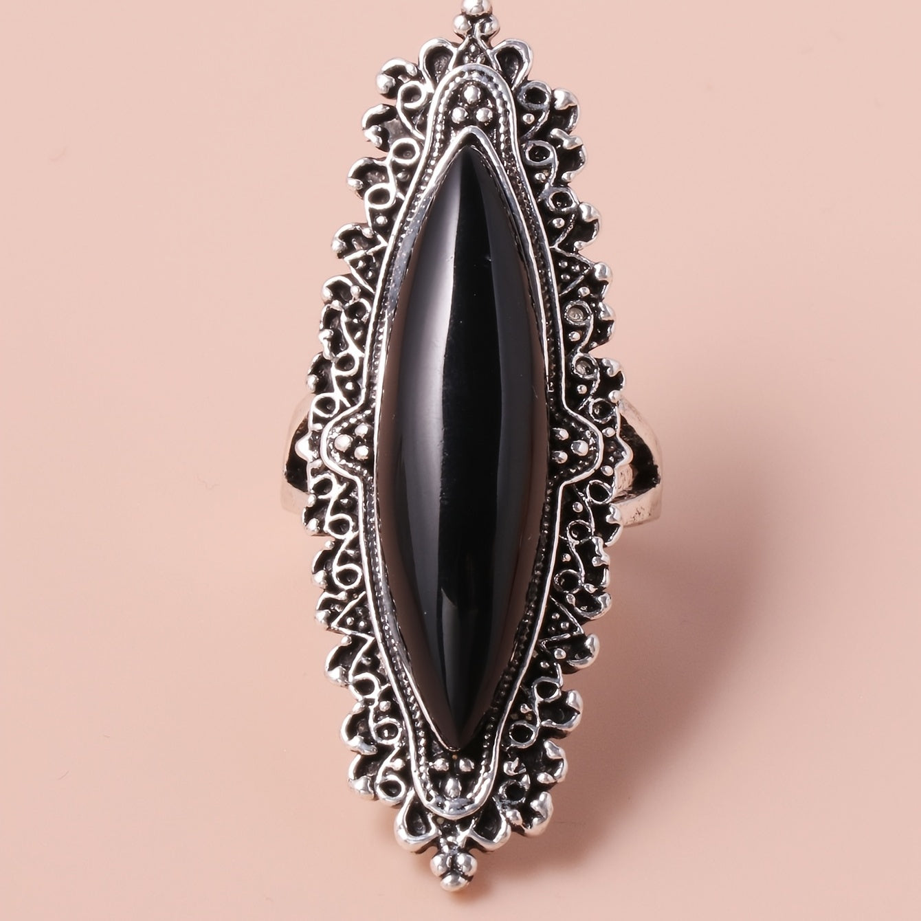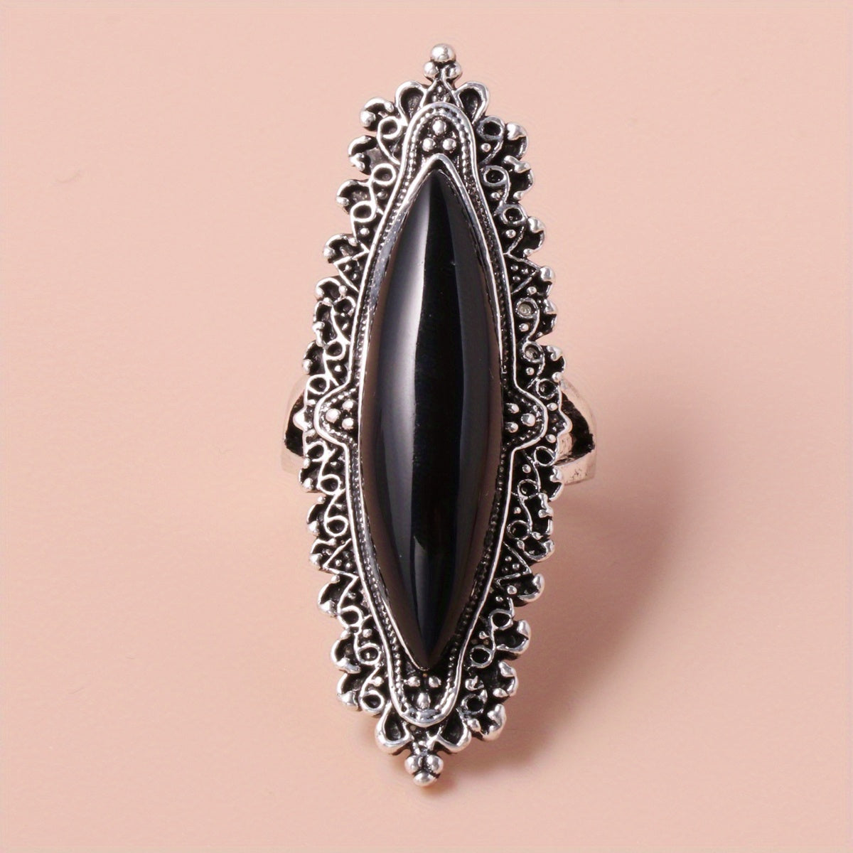 This vintage resin ring is a stylish addition to your retro fashion collection. The long design adds a touch of gothic charm to your look.