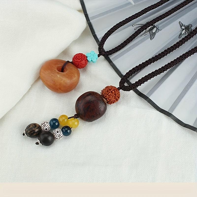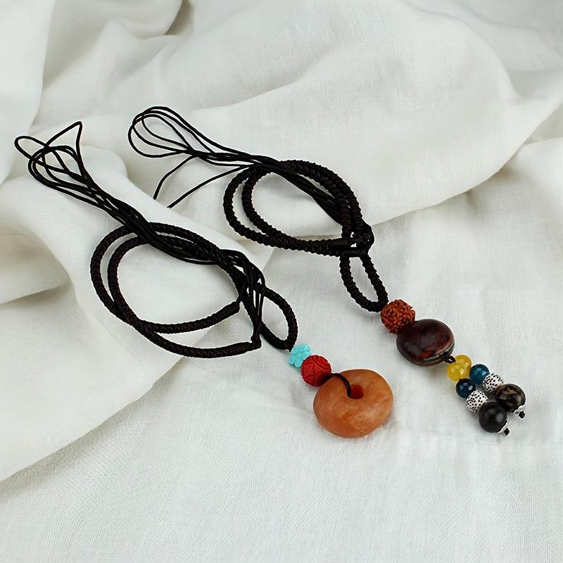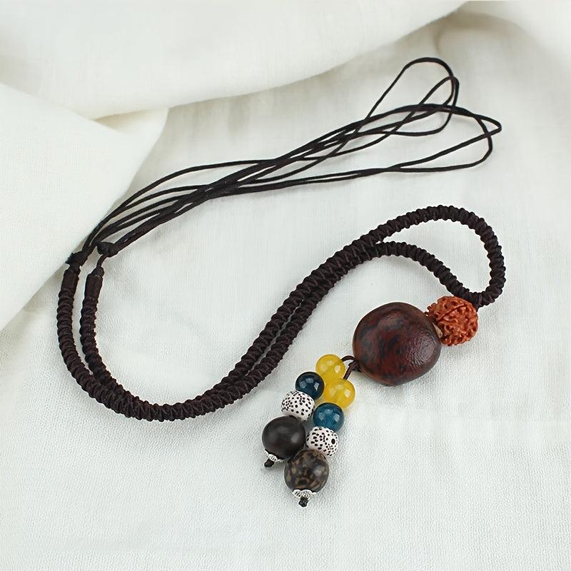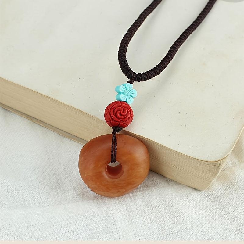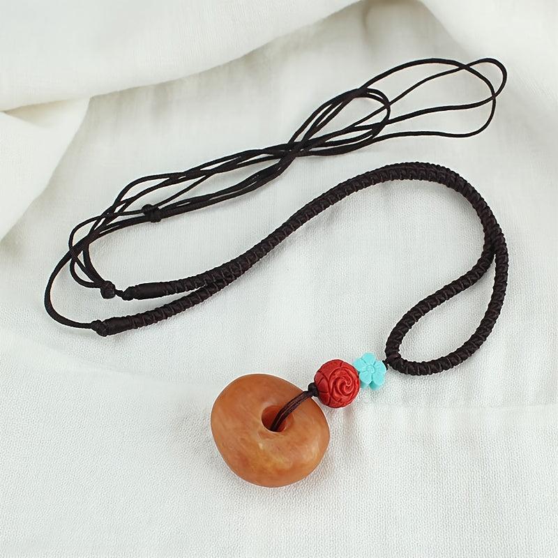 Add a touch of vintage charm to your outfit with this fashionable sweater necklace featuring a synthetic fiber rope and resin pendant. Perfect for parties and punk rock style.