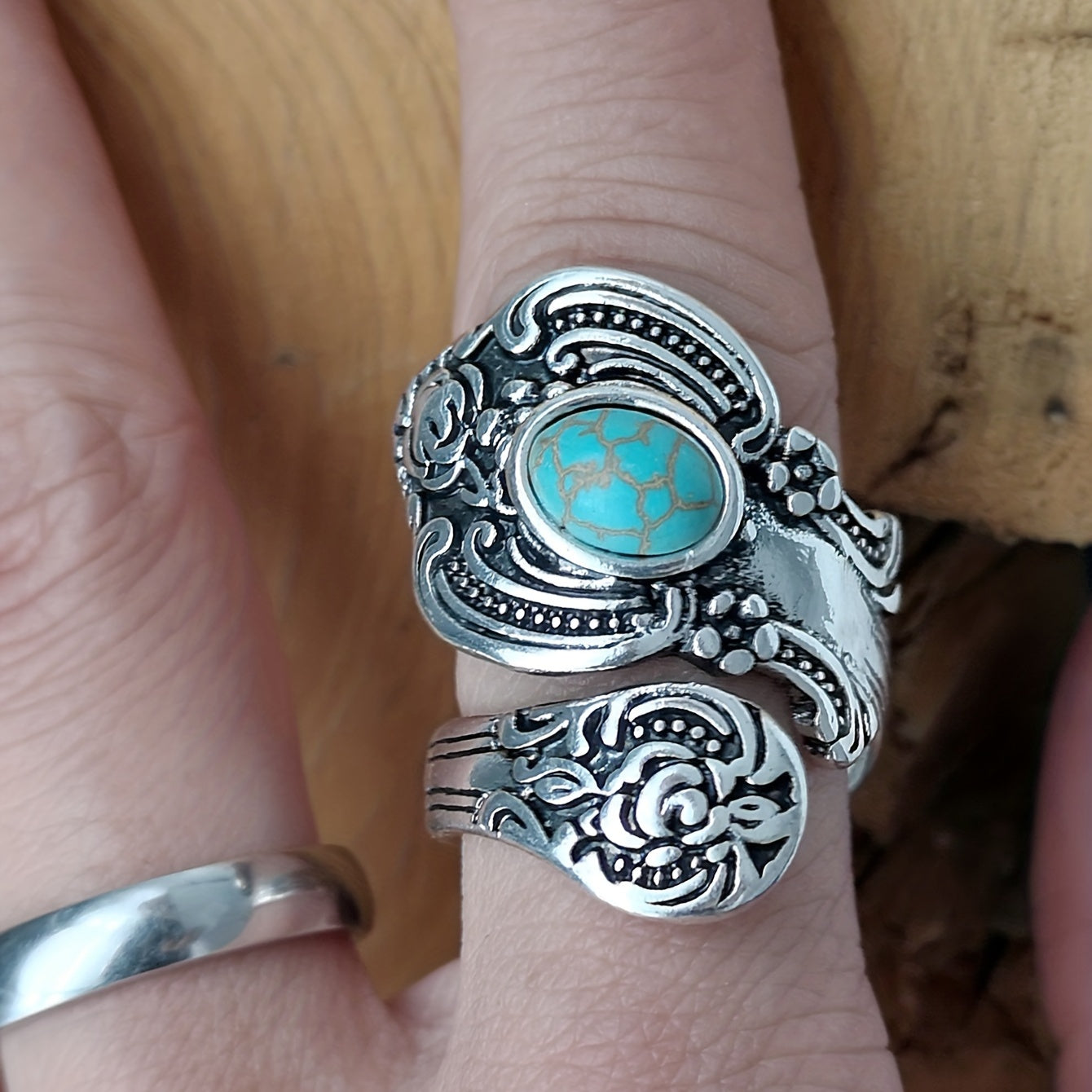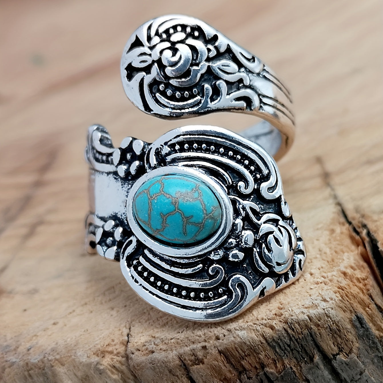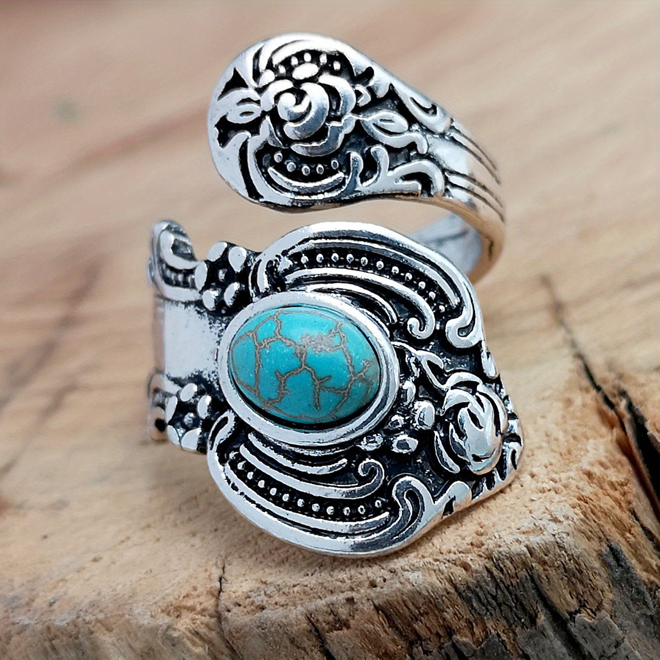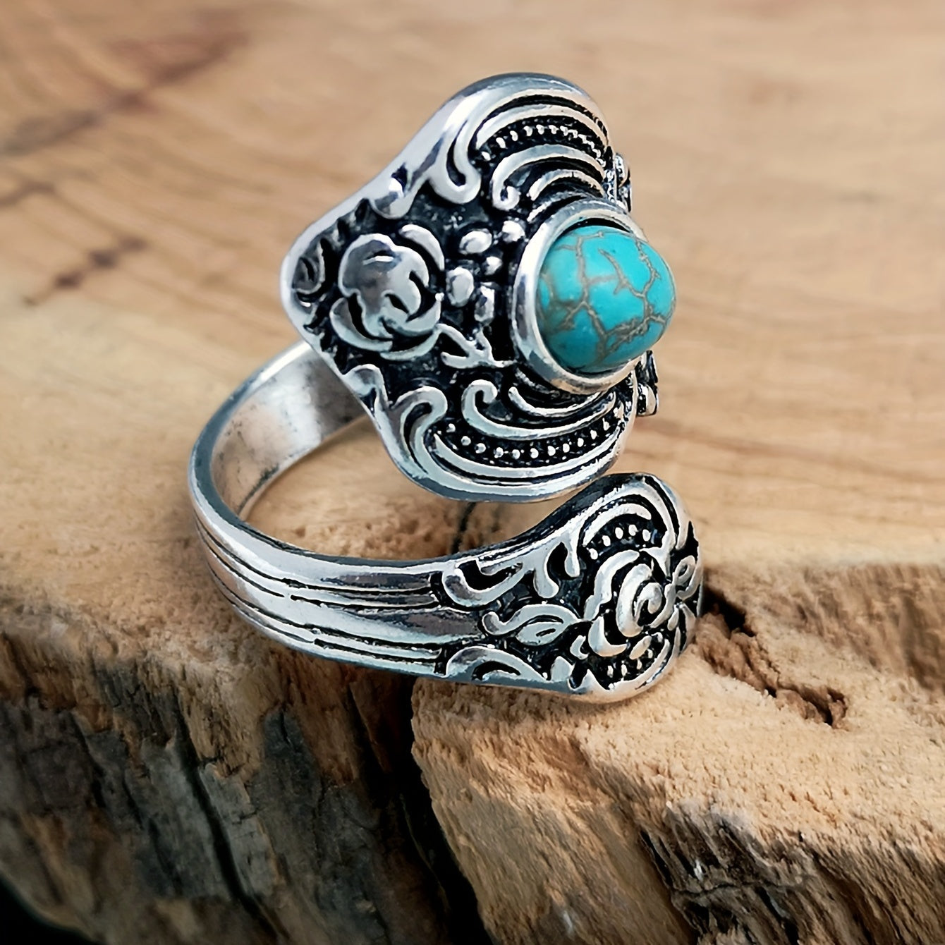 This men's vintage turquoise ring features a retro style with an adjustable opening design.