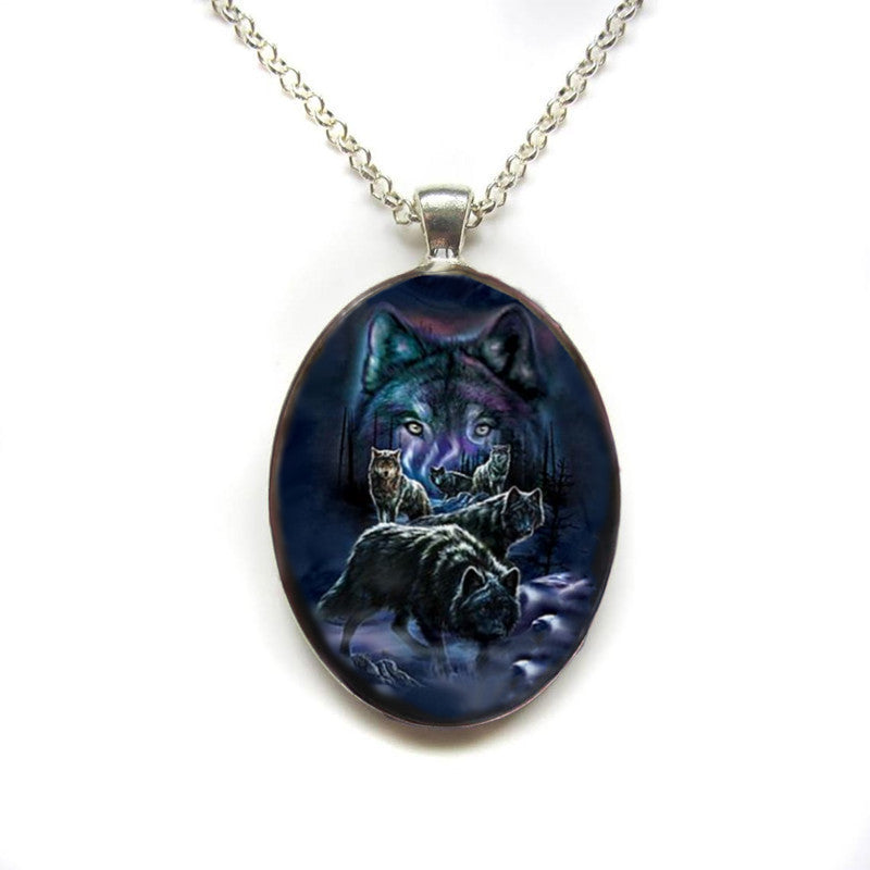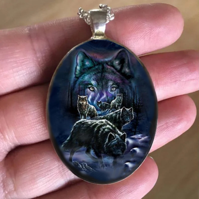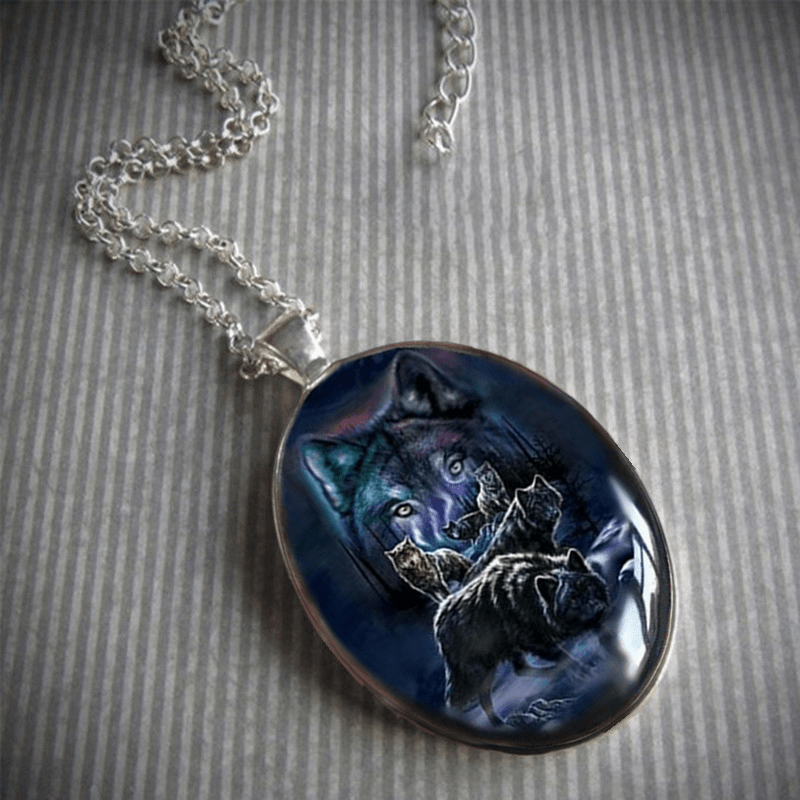 This pendant necklace features a punk animal wolf head design with an Indian totem animal painted image. It is a unique and stylish accessory for men.