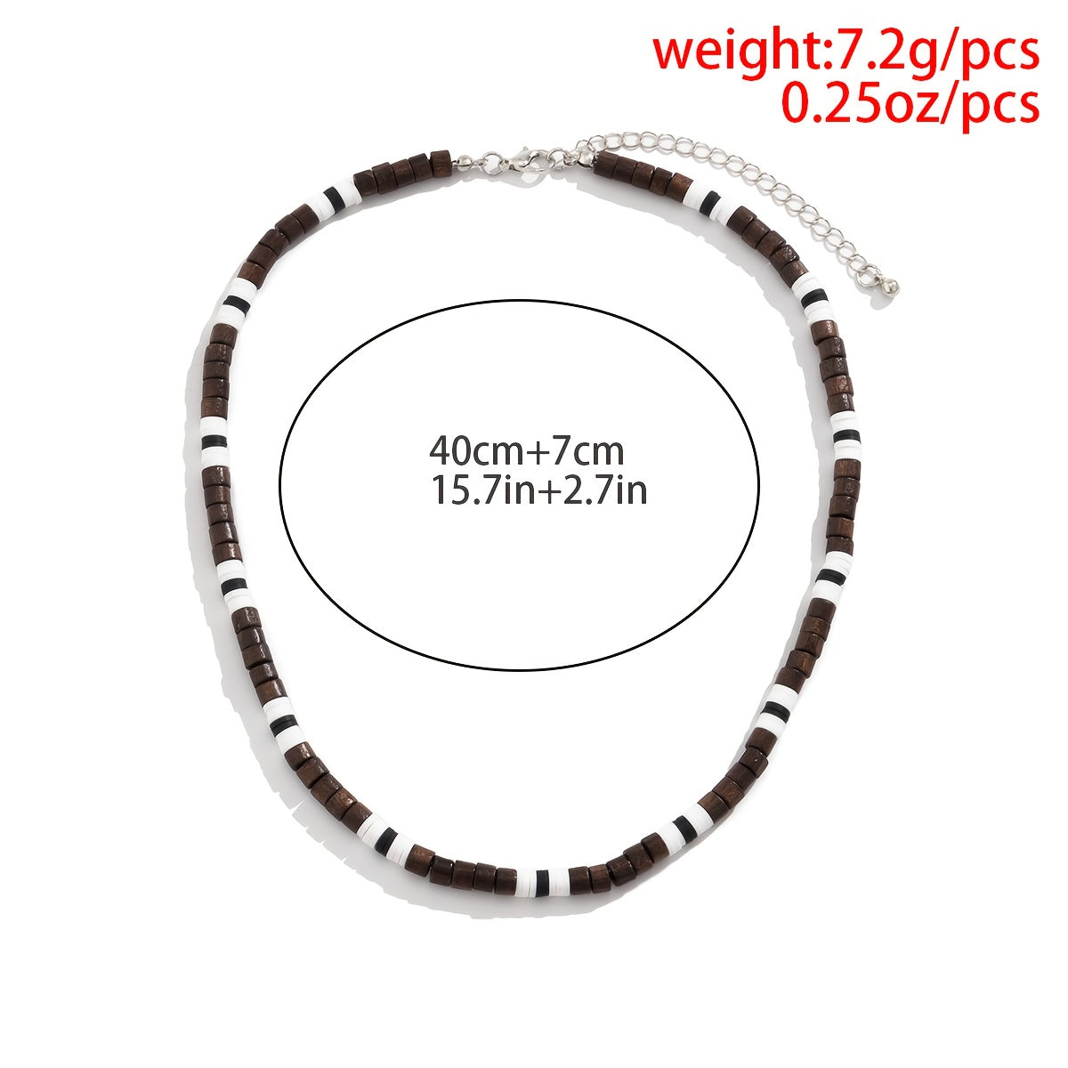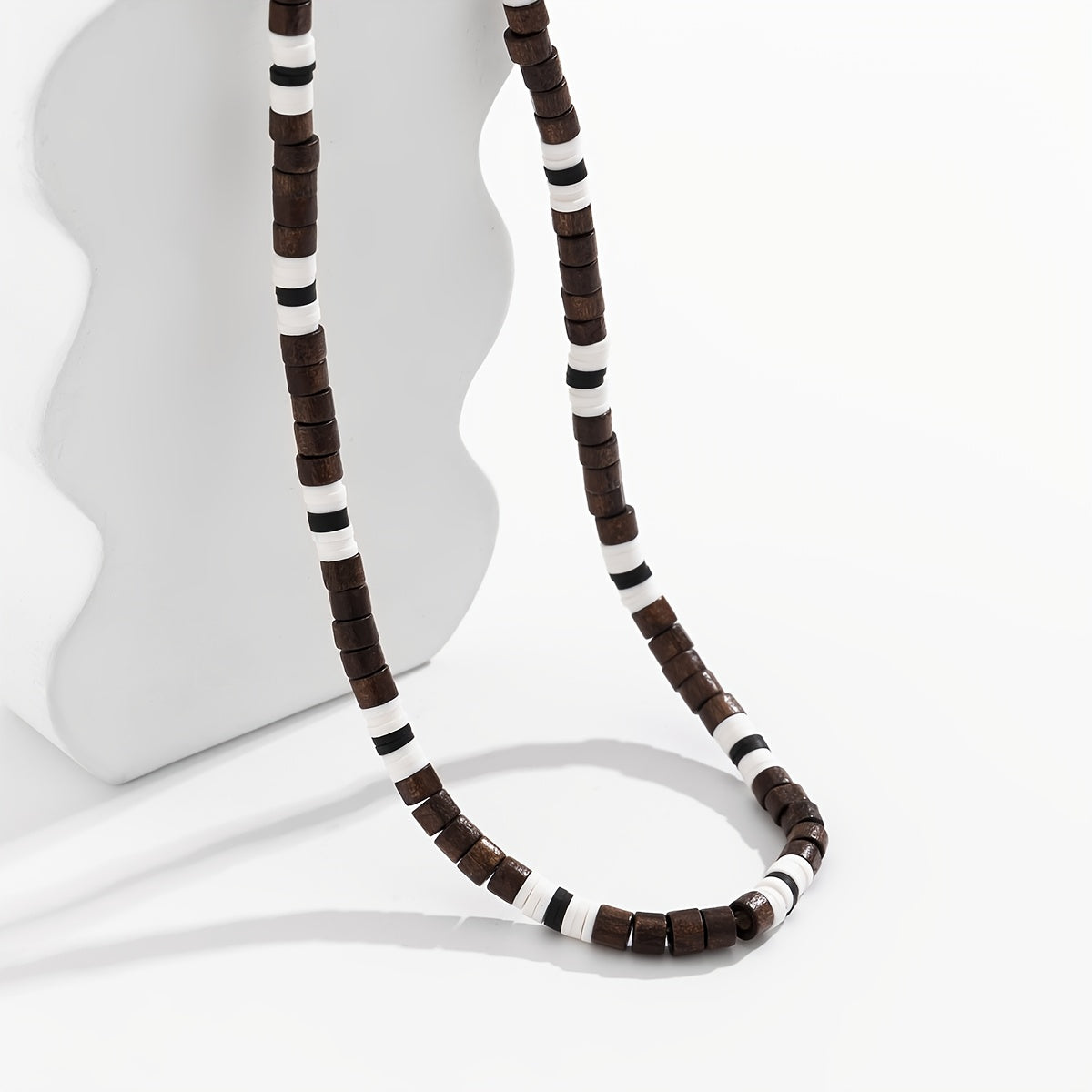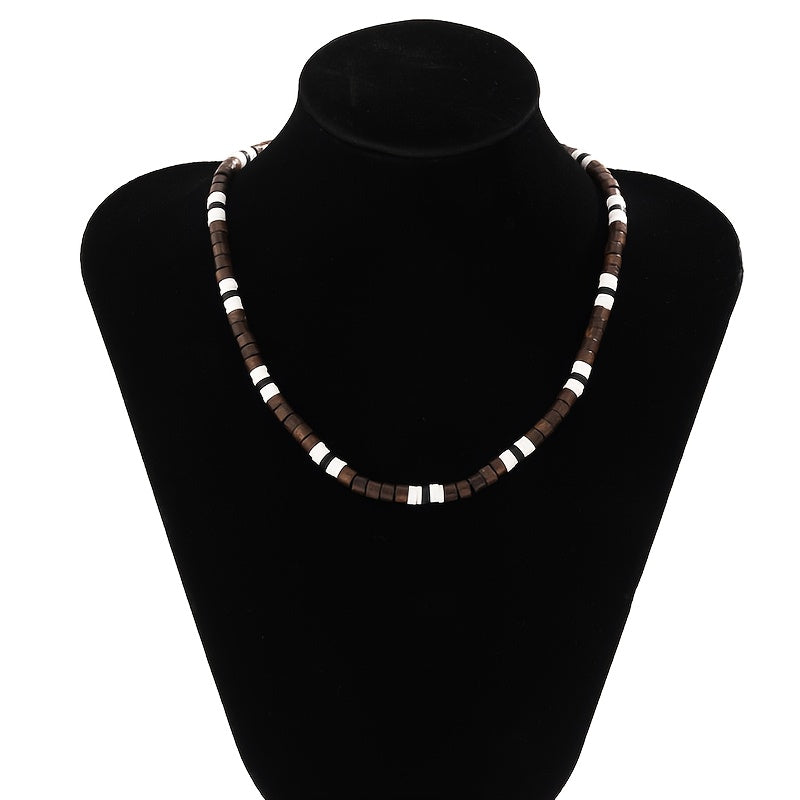 Embrace the tribal style with this unique men's necklace featuring wooden beads and clay pendant. Perfect for the beach or surfer vibes.