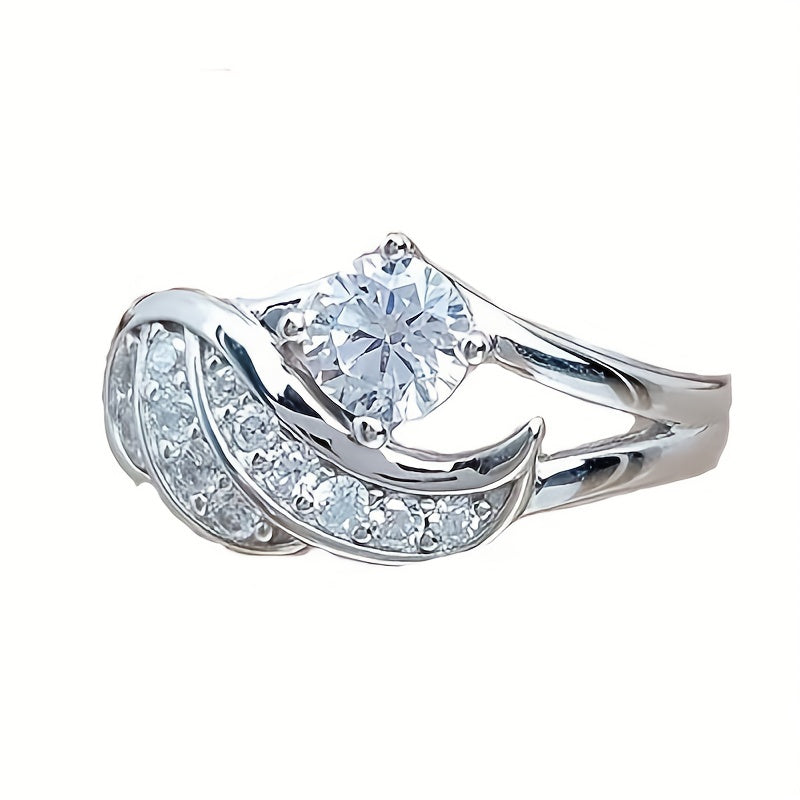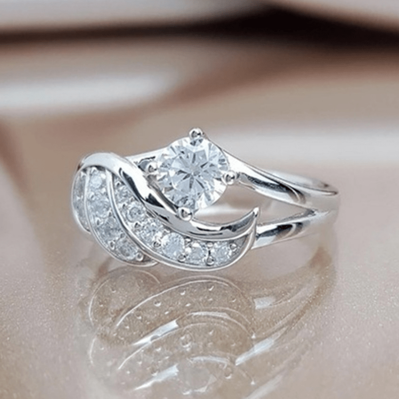 This stylish ring features a unique angel wings shape with zircon inlay.