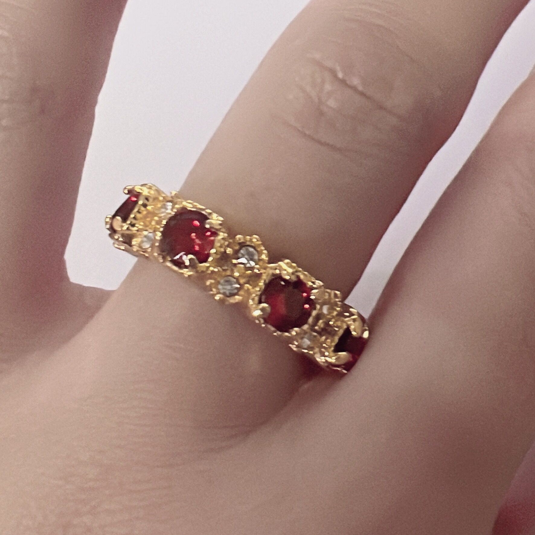 Simple and elegant men's wedding band featuring zircon stones and red artificial diamonds. Ideal for parties, birthdays, anniversaries, and Christmas gifts for your boyfriend. Made of high-quality alloy material.