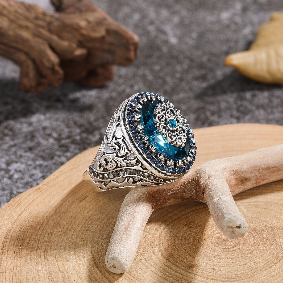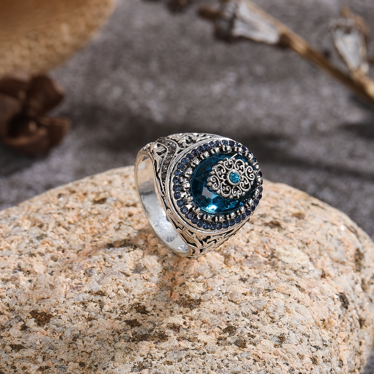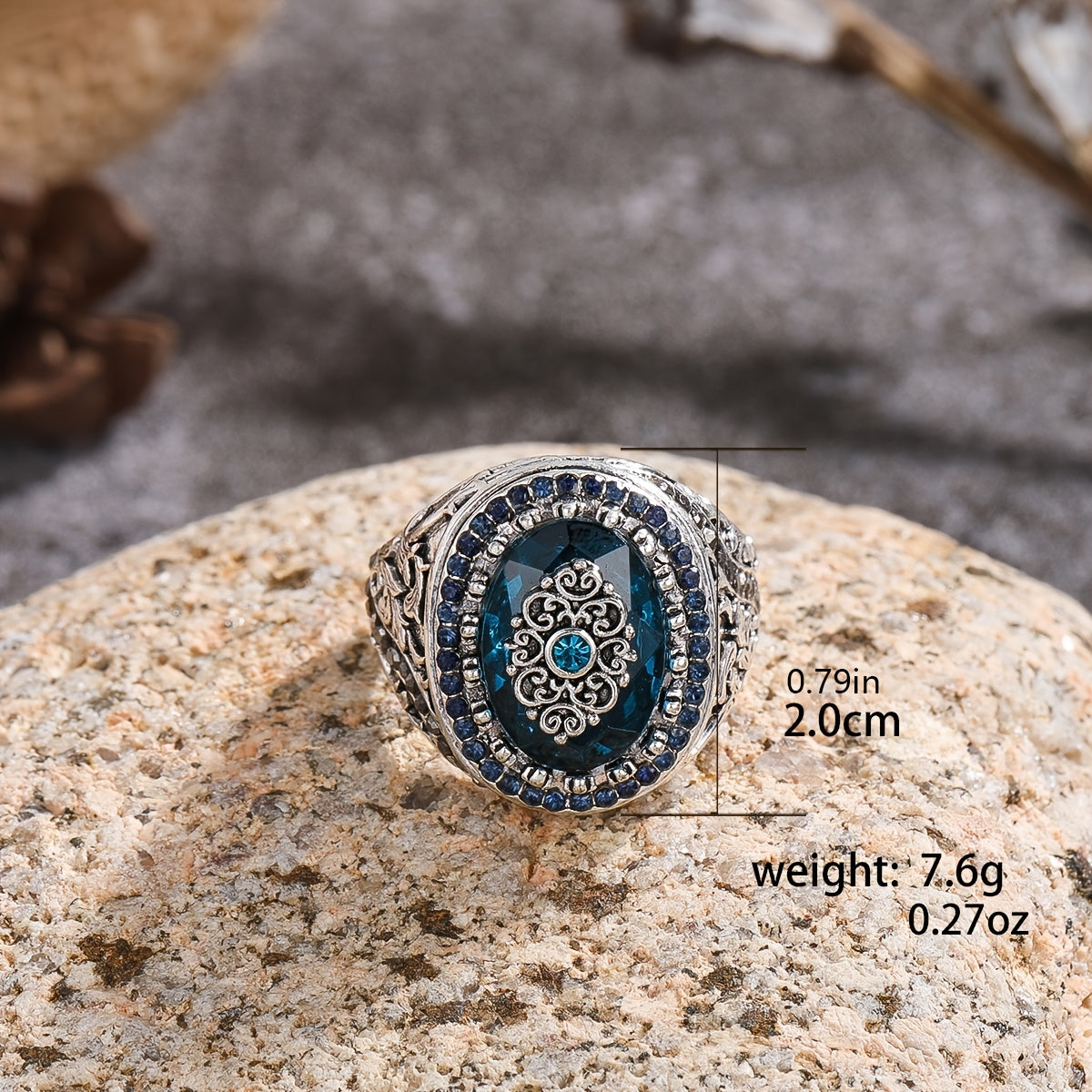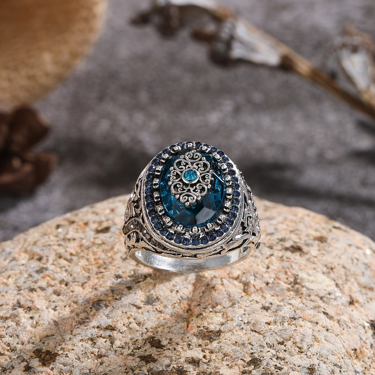 This stylish men's ring features zircon inlaid artificial diamond with a vintage gemstone design.