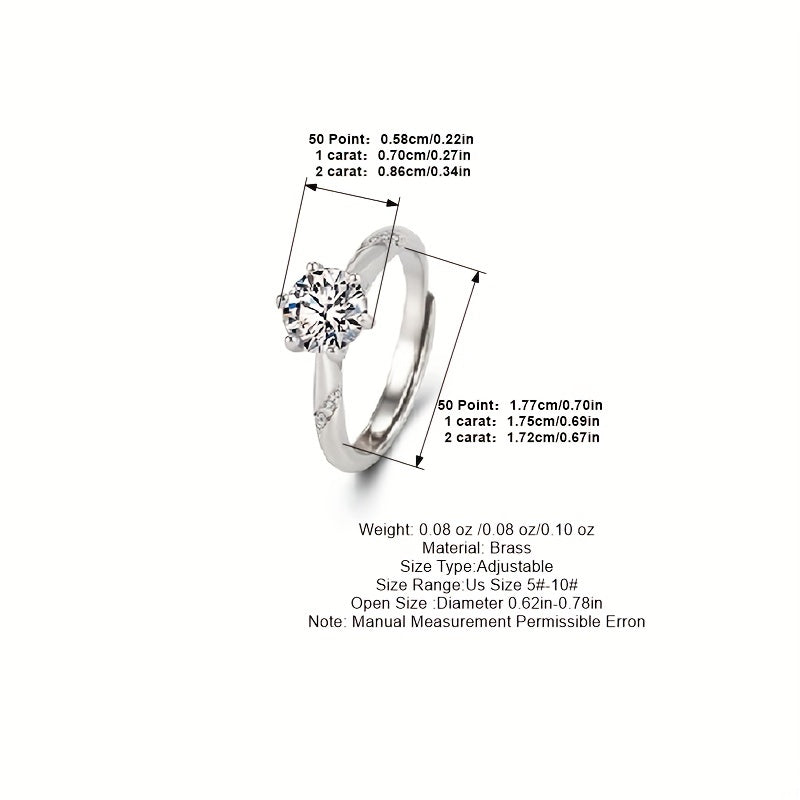 This romantic ring features a round cut zirconia and an adjustable opening design. Perfect for engagements, proposals, or as a gift for your special someone.