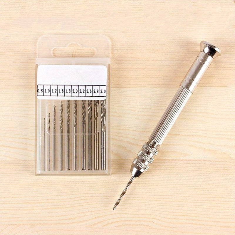 This set includes metal hand drill equipment for drilling holes in resin molds. It comes with drills ranging from 0.8mm to 3.0mm, perfect for DIY jewelry making projects.