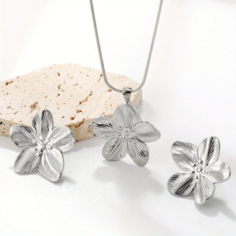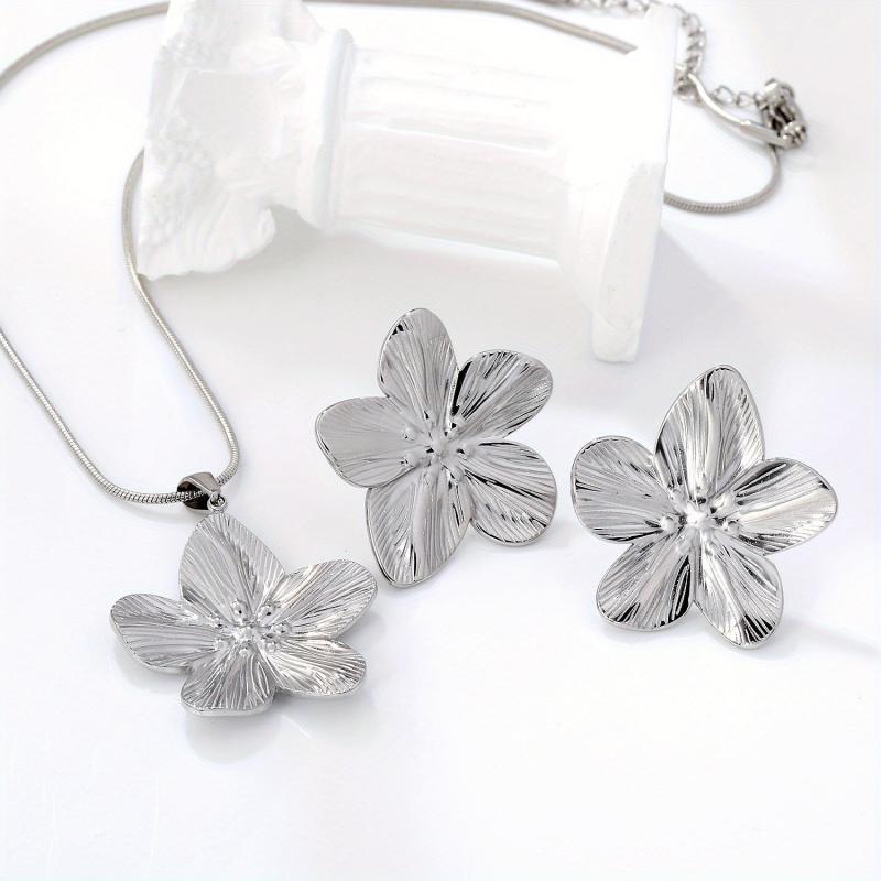 This elegant set features a vintage-inspired design with metal pleated flower pendant earrings and a matching necklace. The intricate details and high-end finish make it a perfect statement piece for any occasion.