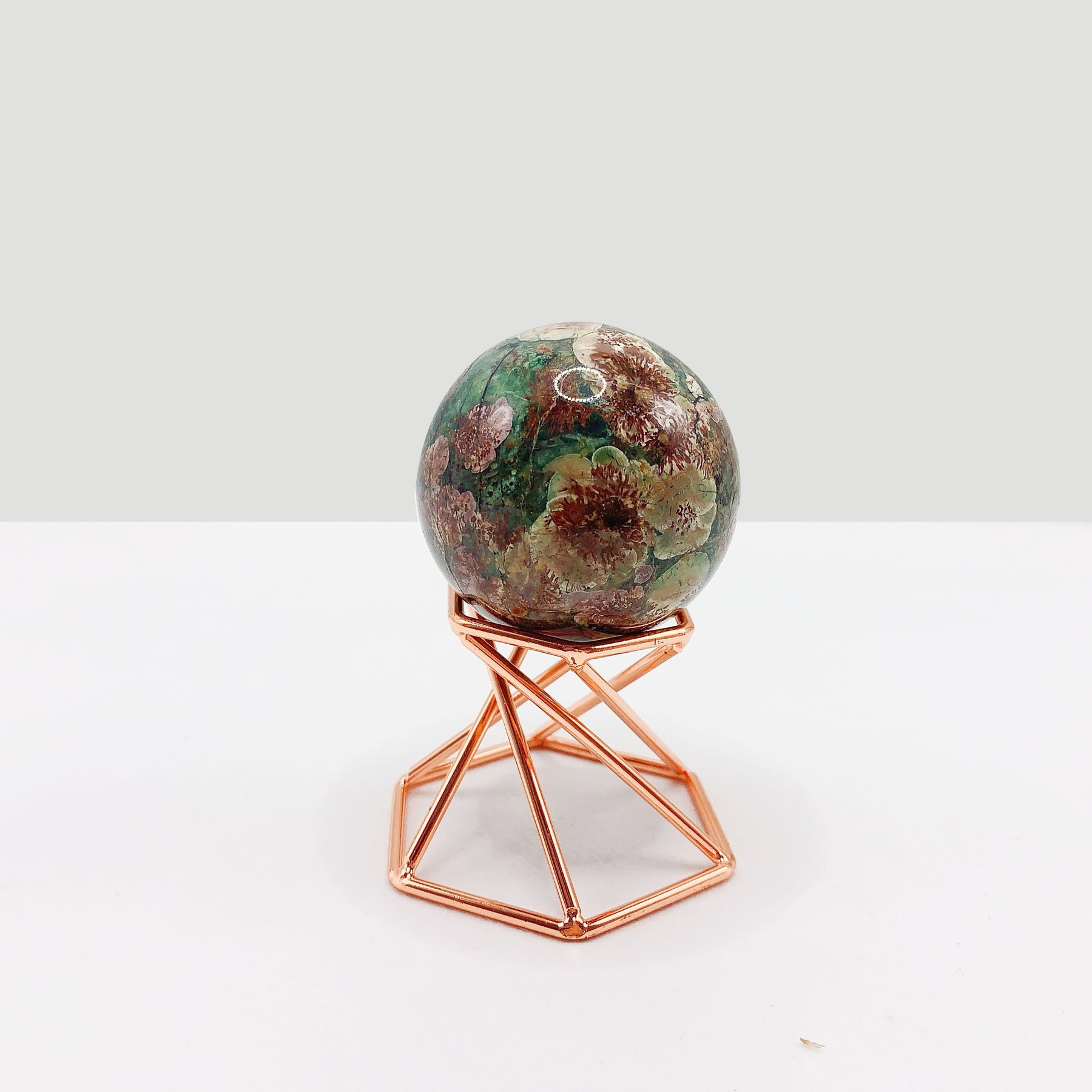 Add a touch of elegance to your home decor with this colorful metal sphere holder. This unique piece doubles as a storage rack and art decoration.