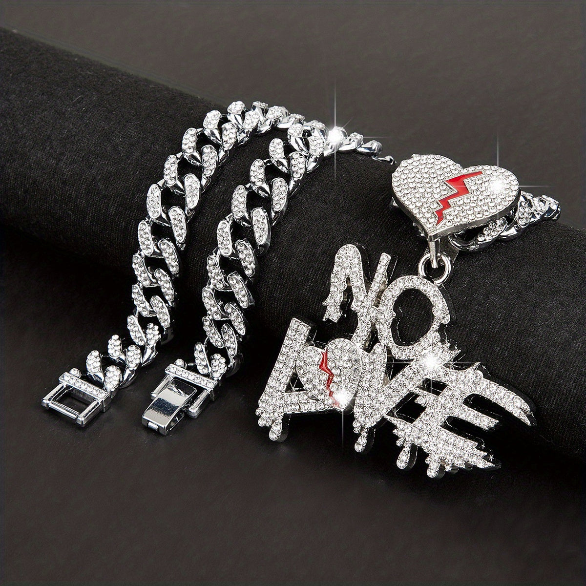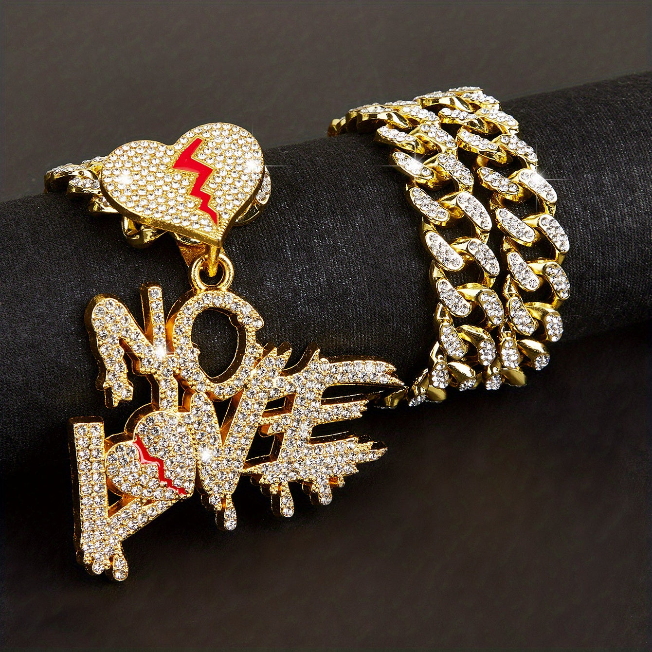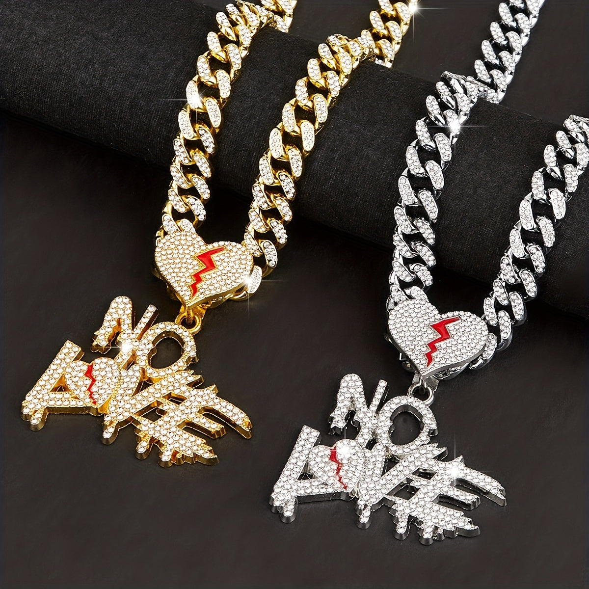 Stay trendy with this stylish NOLOVE pendant necklace featuring delicate rhinestones. It comes with a 1 1 Cuban chain that adds a touch of hip hop flair.